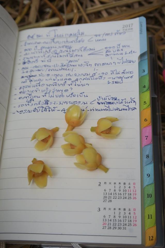 เมื่อวานนี้ท่านพระครูโอภาสฯ ปรารภถึงที่ศรีลังกาว่าคนเขาเก็บเอาแต่ดอกไม้ใกล้มือมาถวายบูชาพระอย่างเรียบและง่าย ในขณะที่ผมเองนั้นนิยมร่วมงานแบบง่าย ๆ และเงียบ ๆ แล้วถูกท่าน อ.ราวีเรียกให้ออกไปร่วม "บูชาดวงดอกไม้" ที่ด้านหน้าร่วมกันอีกหลายเจ้าภาพที่เตรียมช่อ-มาลัยดอกไม้กันมาพร้อม โดยมีพานใบหนึ่งถ฿กส่งมาอยู่ตรงหน้า กะว่าจะถวายพระด้วยดอกไม้ "ว่าง" ก็พอดีมีดอก "นางกวัก" น้อย ๆ นี้ร่วงหล่นอยู่ใต้ฟางมากมาย ก็เลยคุ้ยขึ้นมาใส่พานเอาไปถวายพระท่านได้ ท่านคงไม่ว่าอะไร