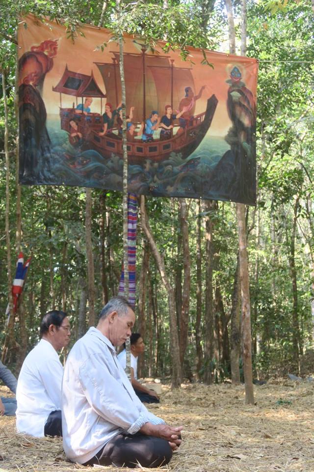น่าจะกำลังแสดงธรรมตามด้วยการใส่บาตร