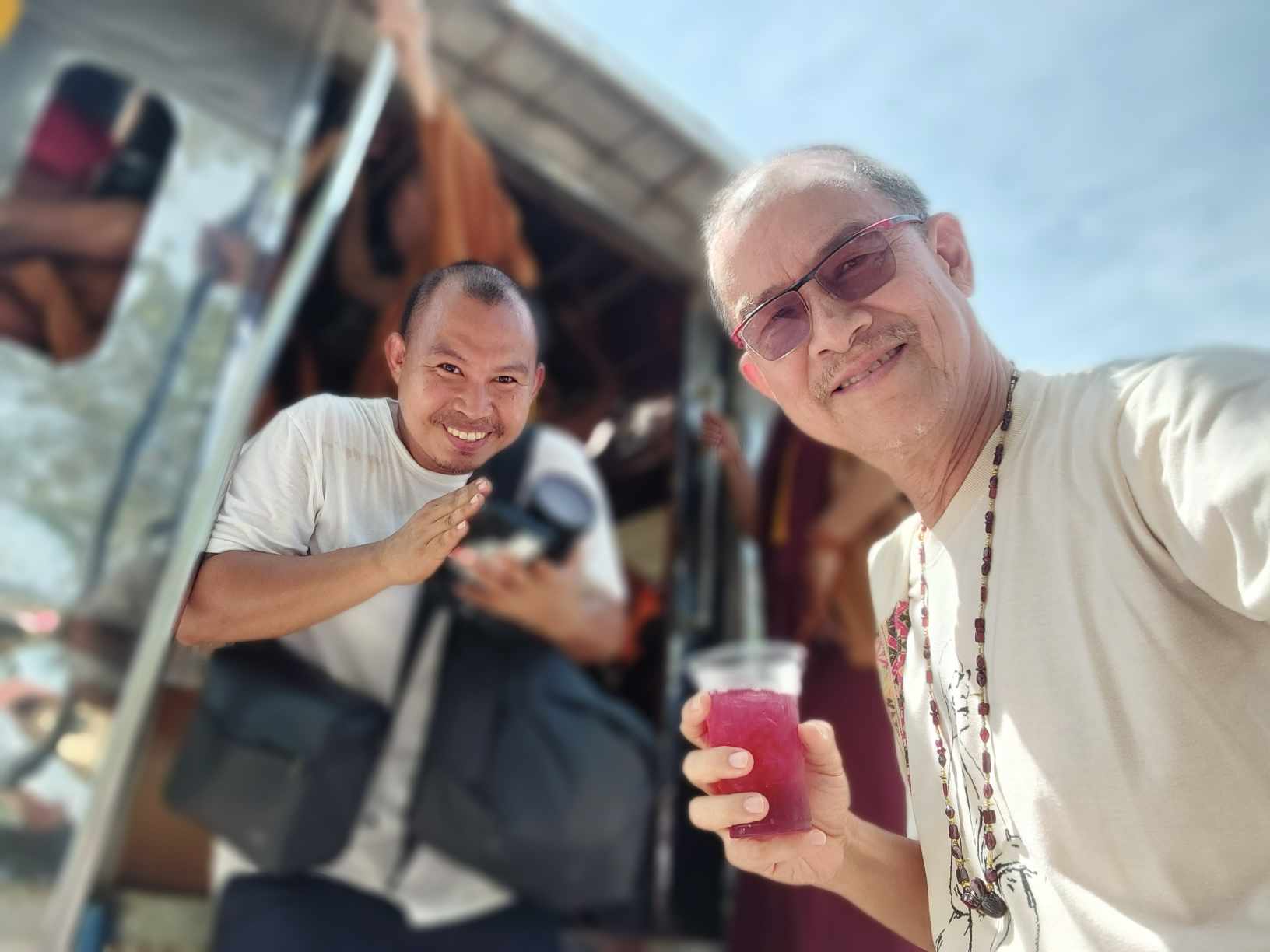 พอดีพระท่านกำลังจะออกเดินทางต่อไป วัดธารน้ำไหล สวนโมกขพลาราม