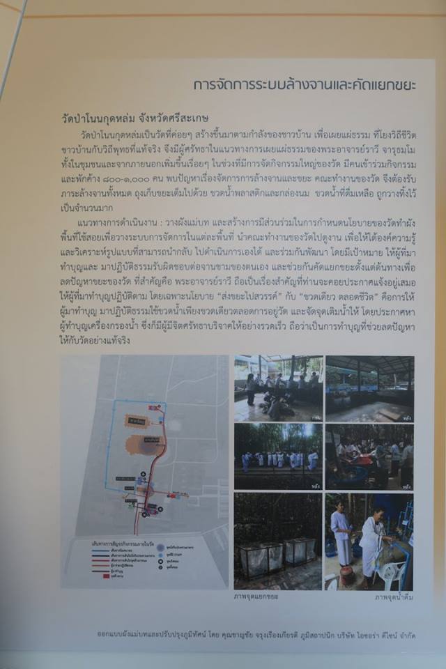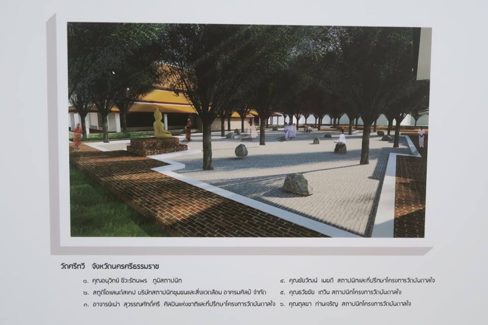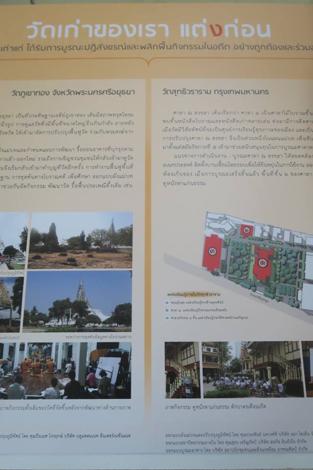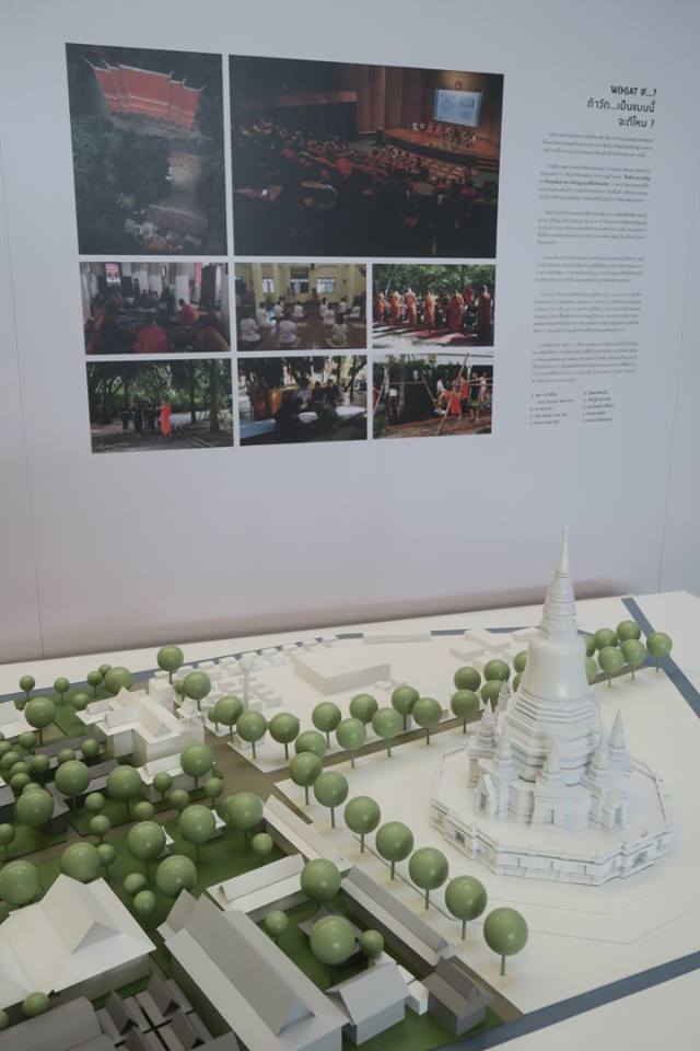 นอกจากนิทรรศการแบบสังเขป มีหุ่นจำลองศาลาวัดศรีทวีที่รอมุงหลังคาพร้อมกับกรอบความคิดในการพัฒนาแบบ โดยวัดพระธาตุยังไม่ลงรายละเอียดอะไร ในท่ามกลาง ๙ วัดแรกเริ่ม ที่เพิ่มมาเป็น ๓๐ กว่าวัดแล้ว