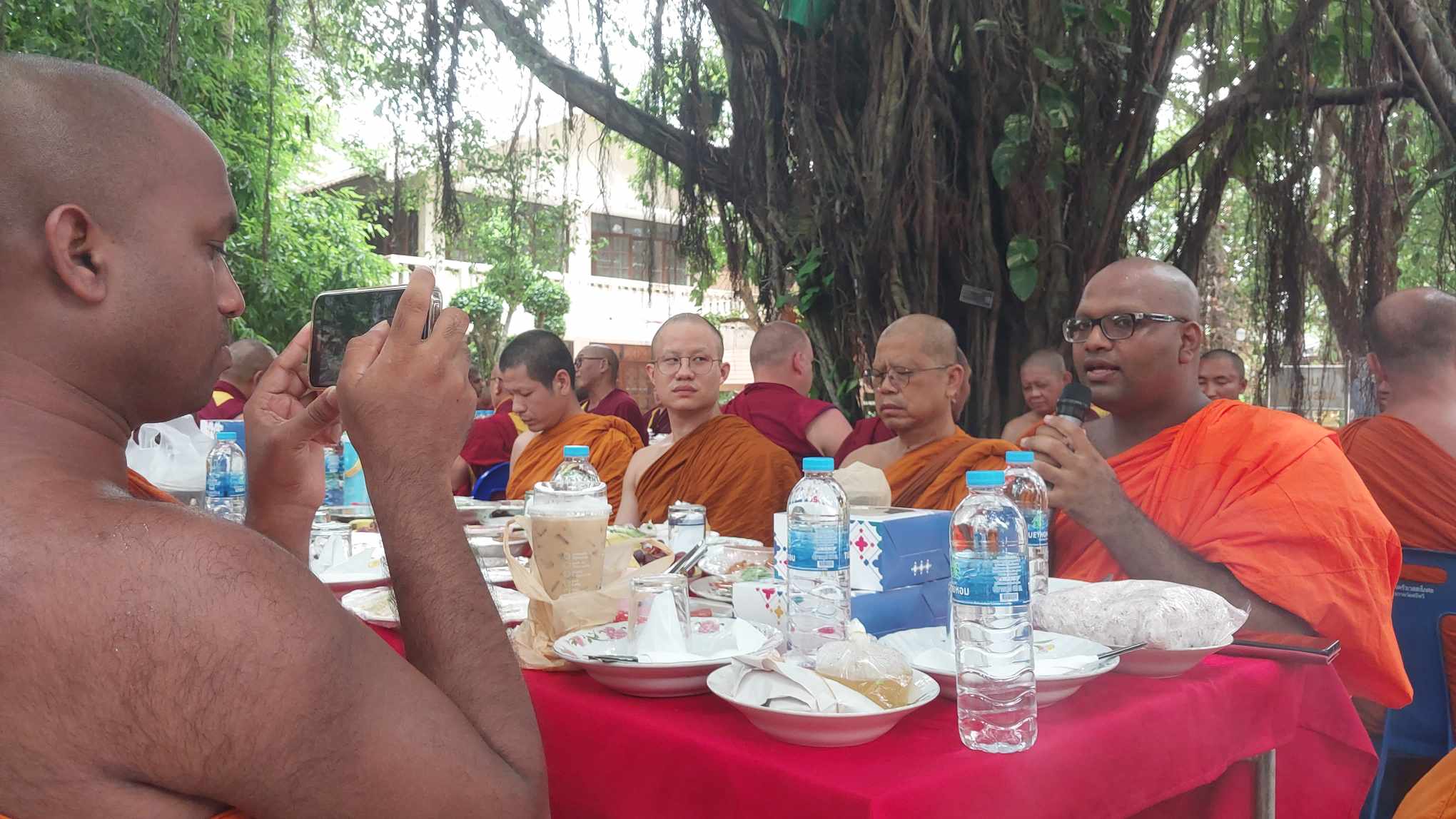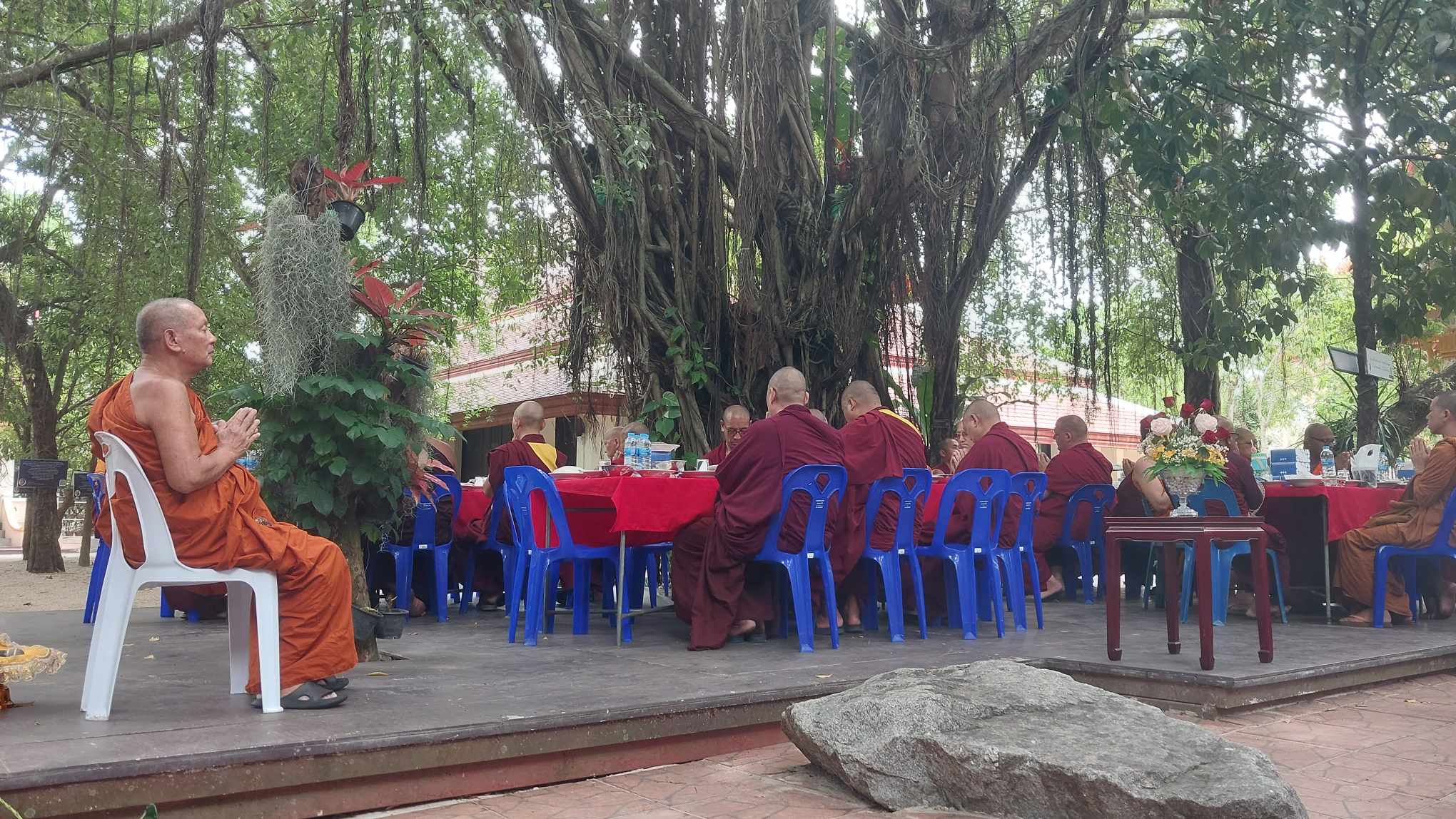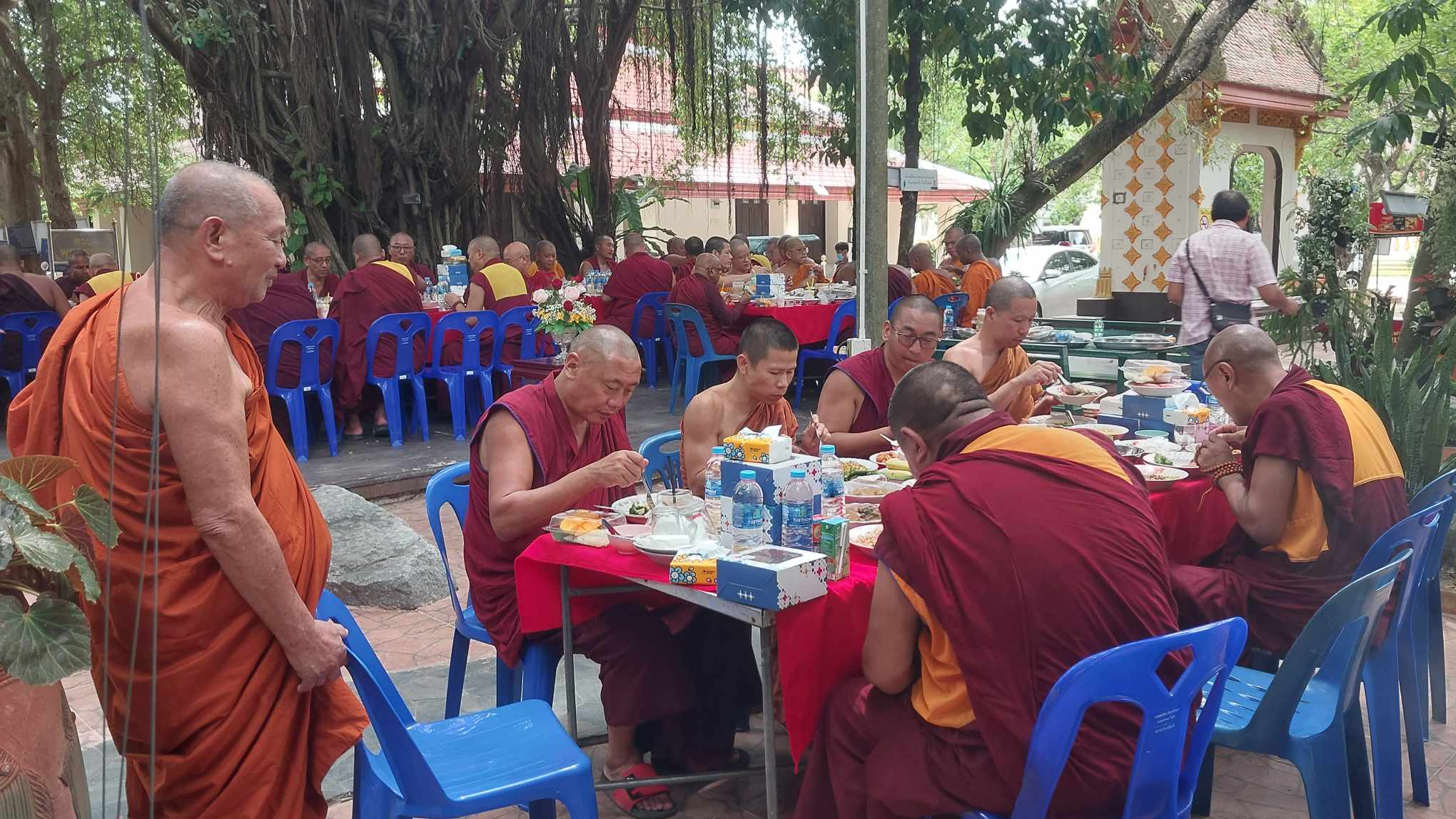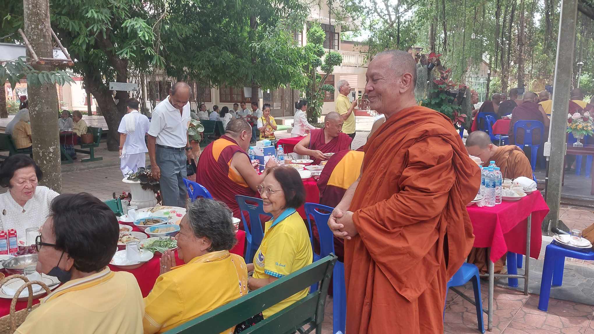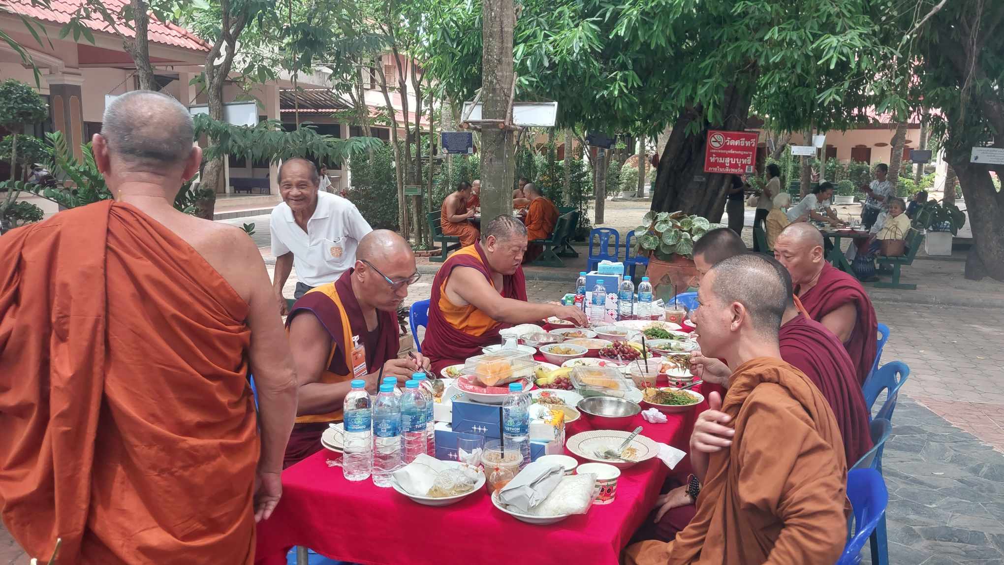 เสร็จเพลแล้วครับ บ่าย ๓ พระท่านจะเดินไปสถานีรถไฟกันครับ