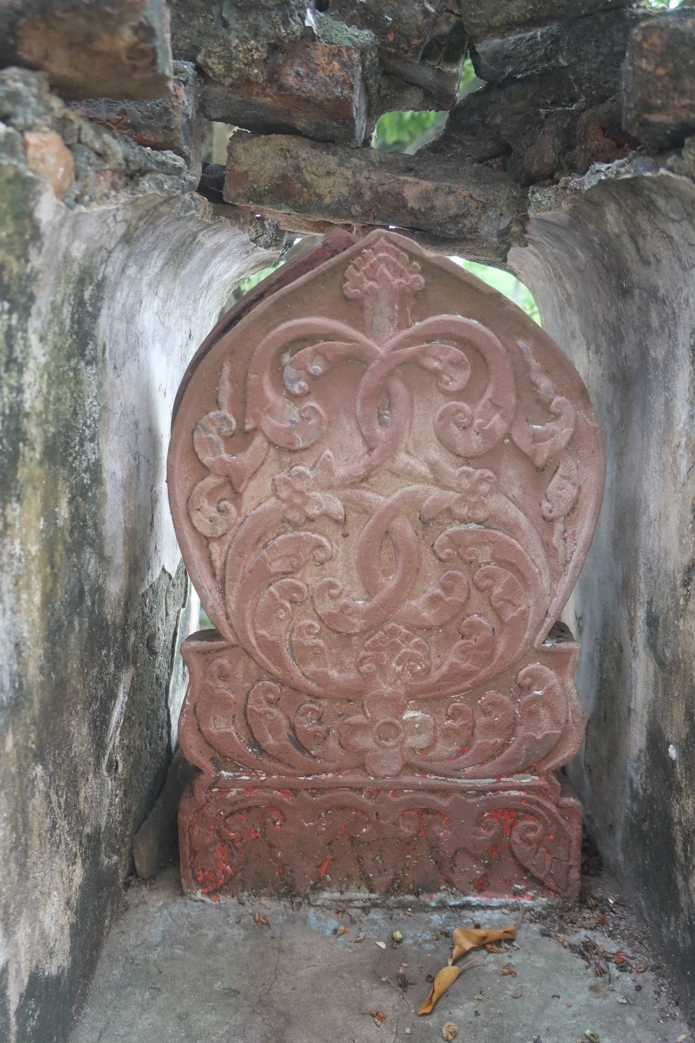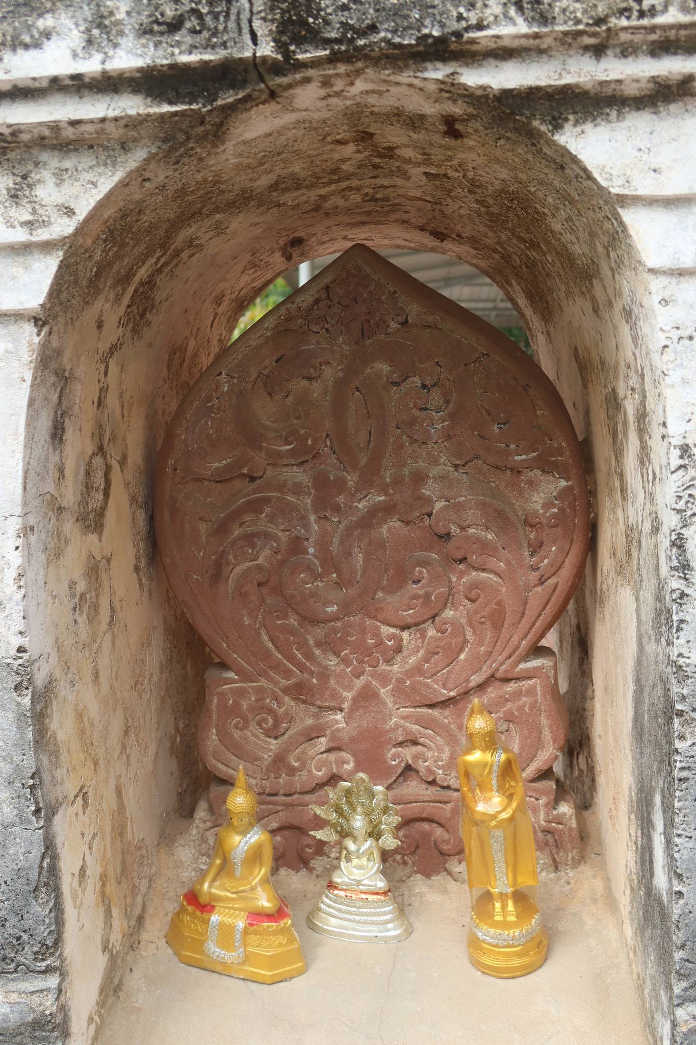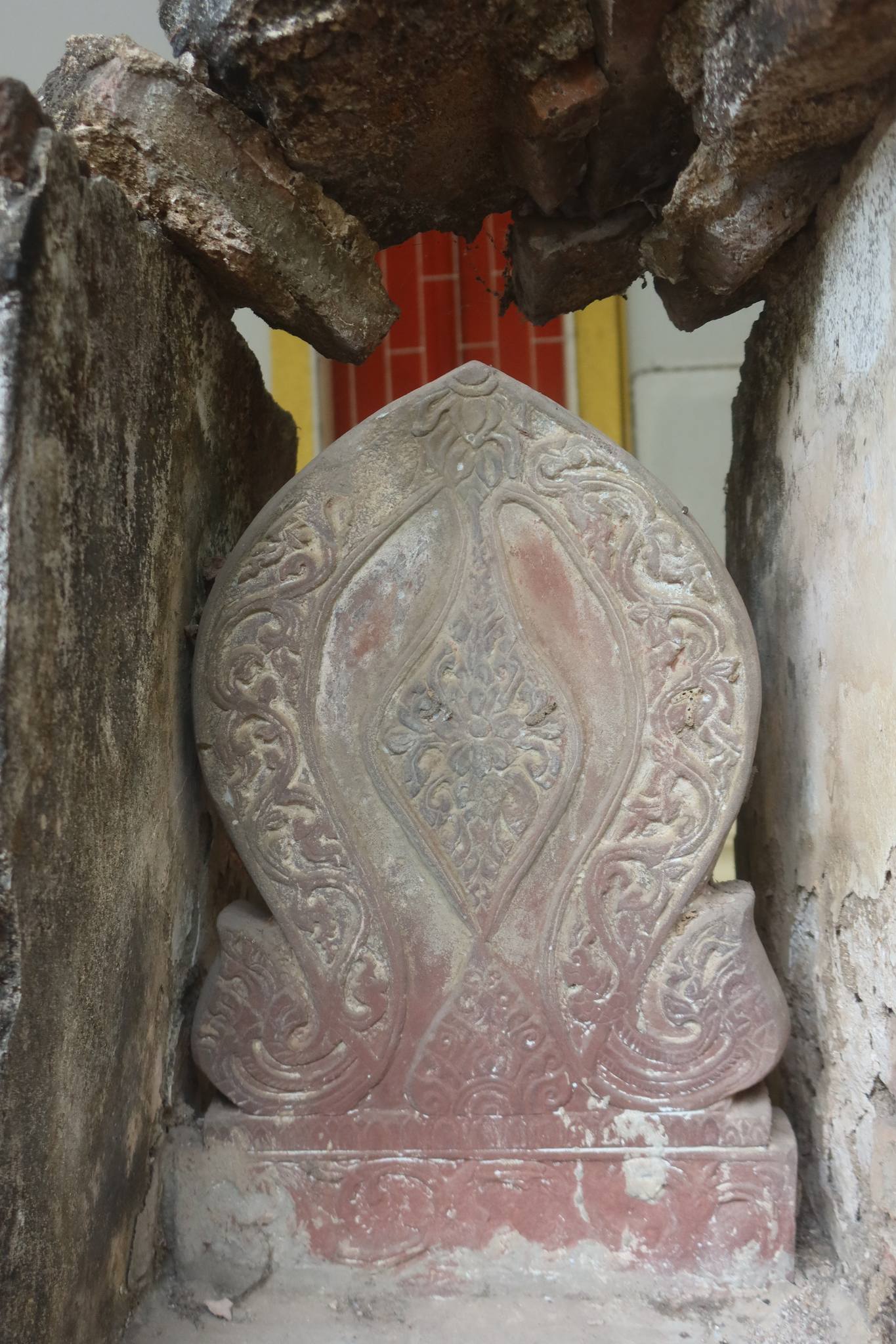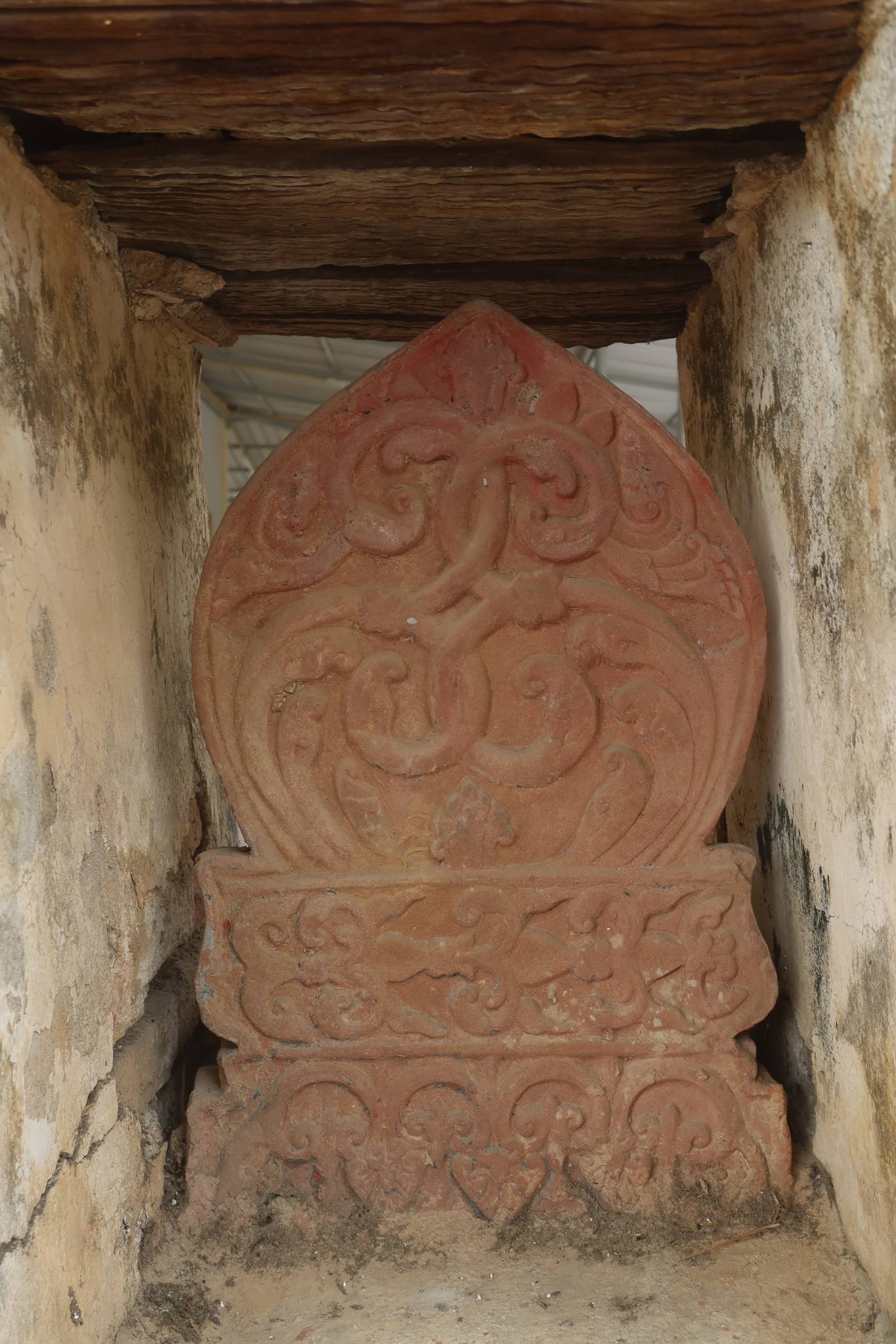 นอกจากกำลังมีงานศพแล้ว ลึกเข้าไปในวัดพบเสมาศิลาทรายแดงสวยแปลกดี
