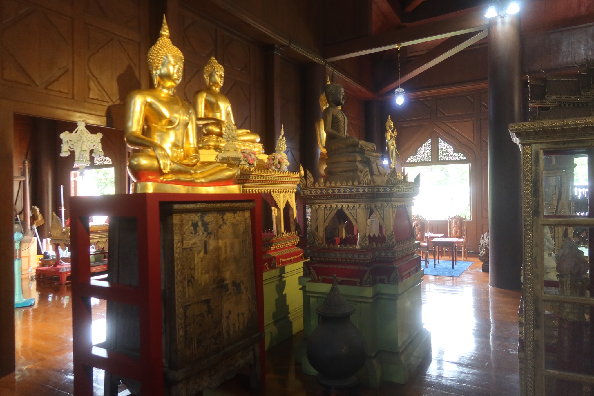 ที่สะดุดตามากสำหรับผม ก็แท่นพระประธานกับการจัดการตู้พระธรรมลายรดน้ำ