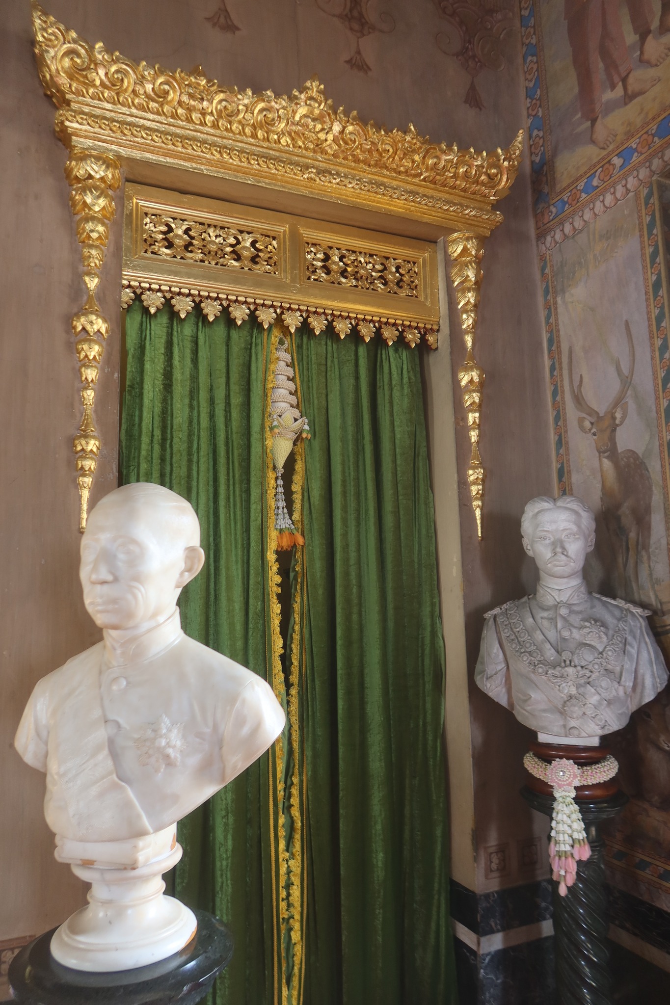 ด้านหน้ามีหินอ่อนจำหลัดพระบรมรูปล้นเกล้ารัชกาลที่ ๔ และ ๕ วางไว้