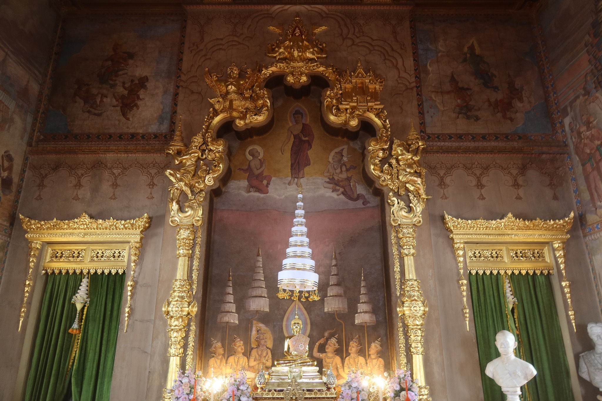 ข้างหลังภาพชุมนุมศากยราชที่ประดิษฐานพระสัมพุทธพรรณีนั้น