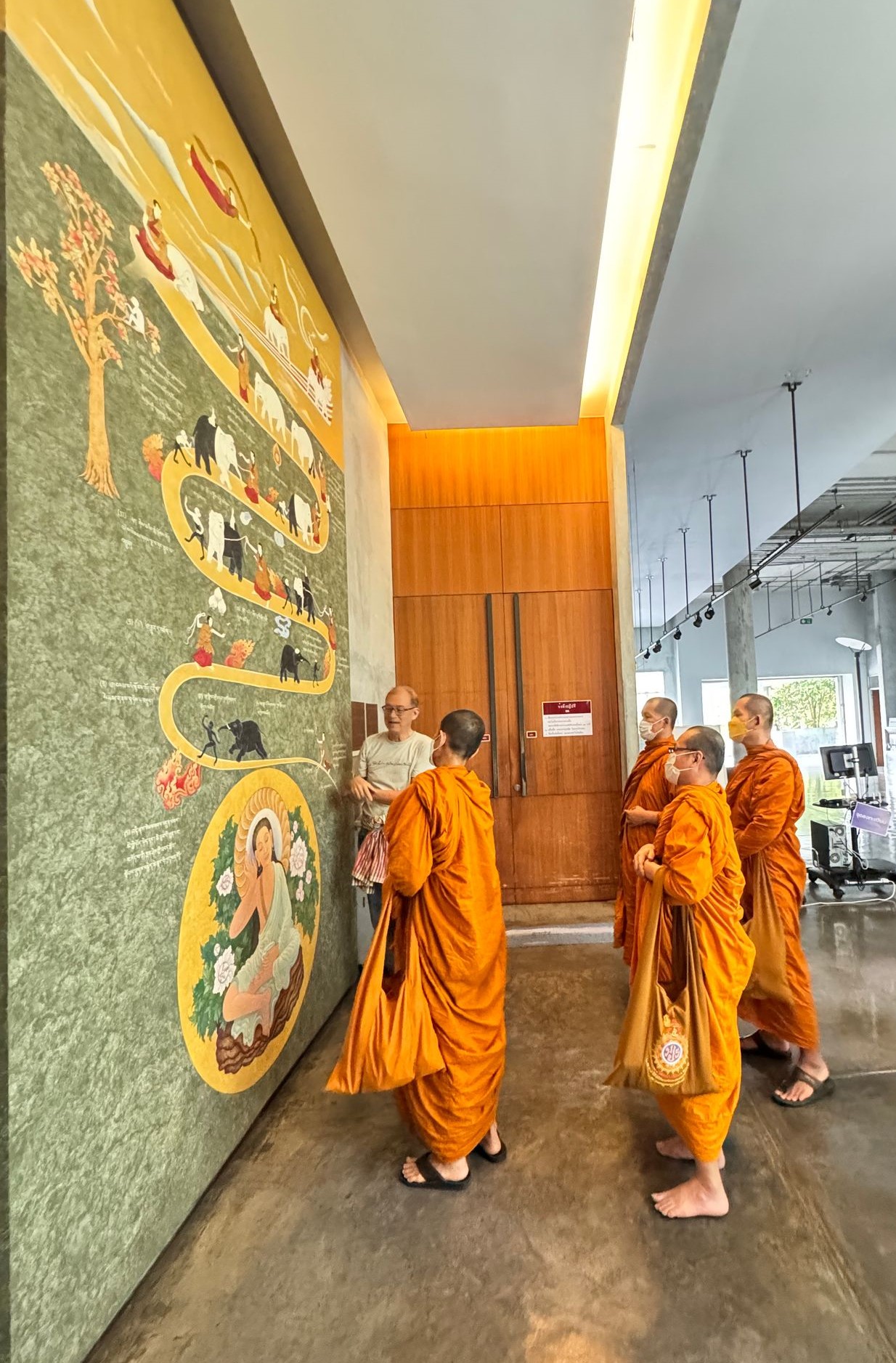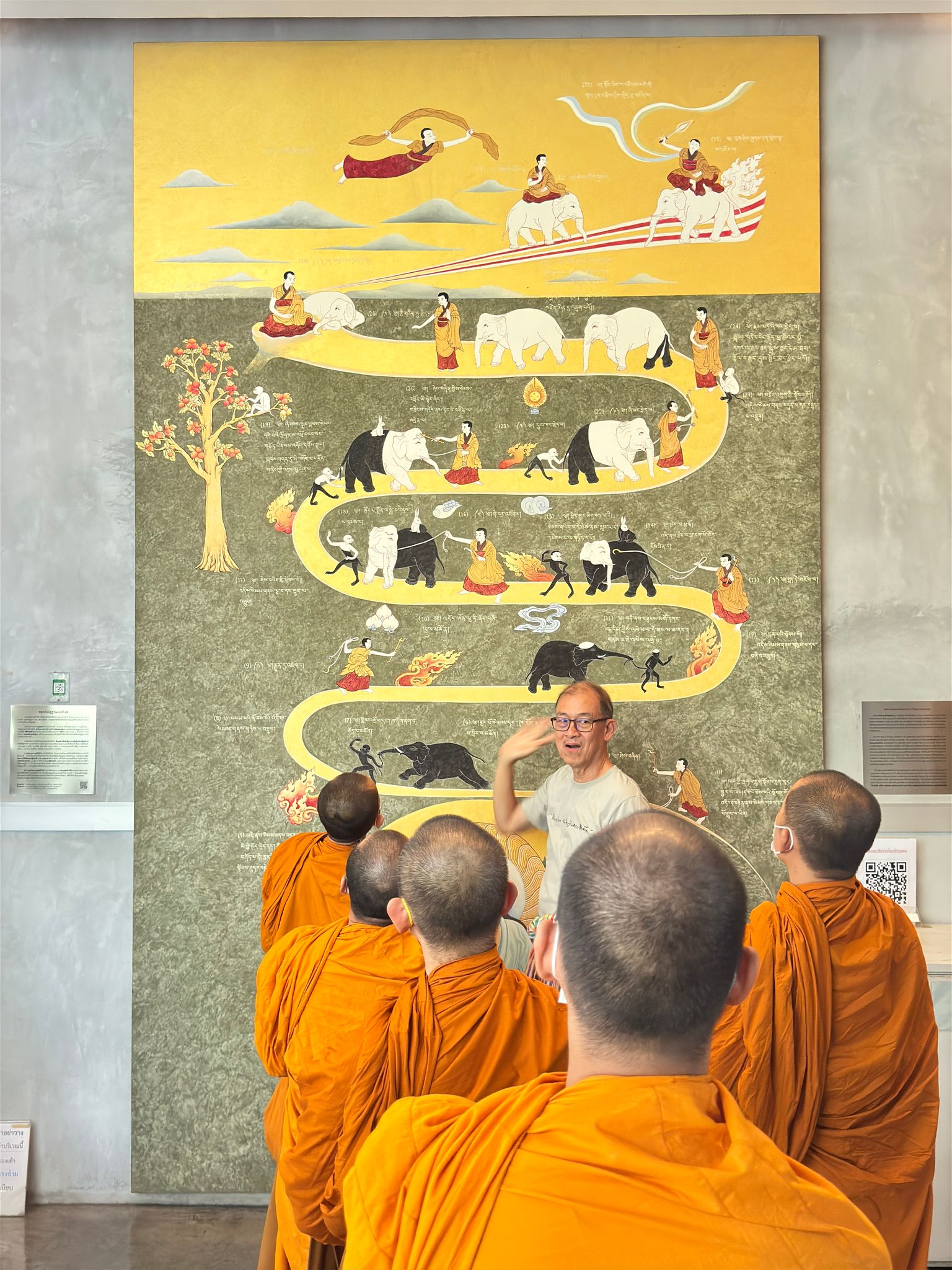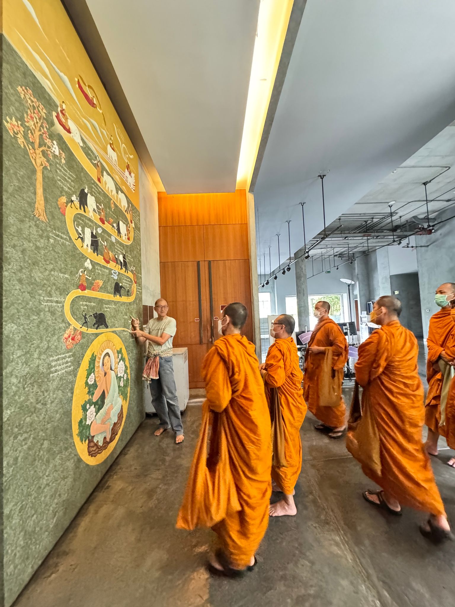 ส่วนที่โถงใหญ่ของหอฯ ติดตั้งภาพพันธกิจของชาวพุทธ