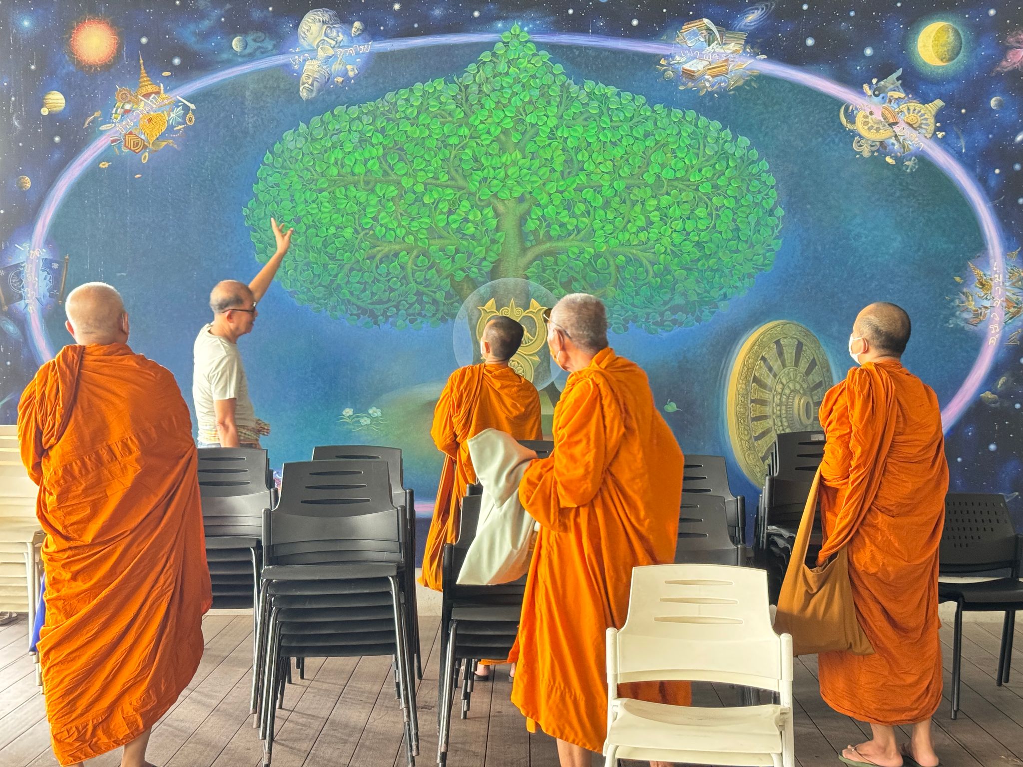 ที่ท่านอาจารย์พุทธทาสออกแบบให้ท่านอาจารย์สุชาติวาดไว้ในโรงหนัง