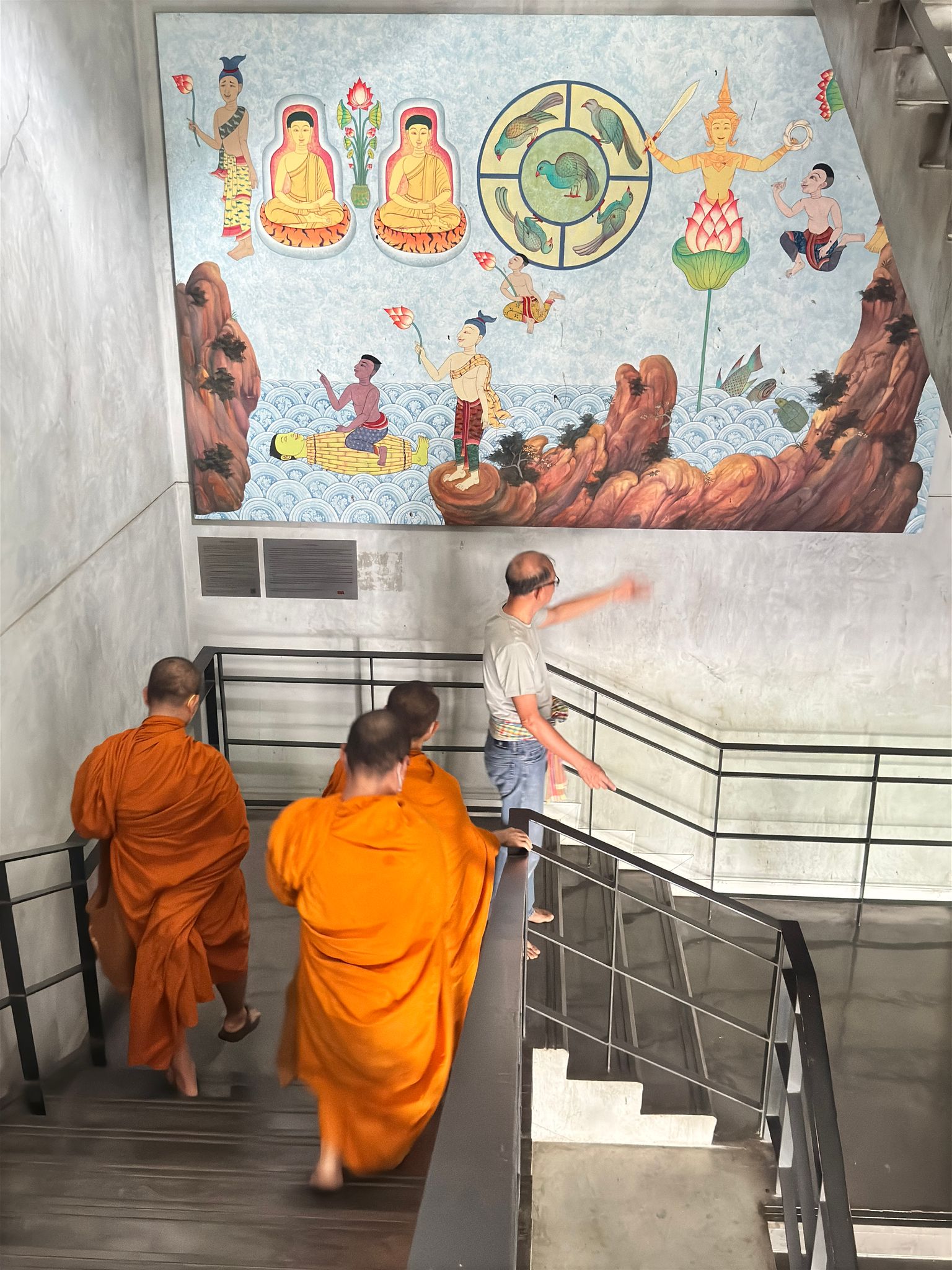 ตรงบันไดทางขึ้นลง ติดตั้งภาพแดนเกิดแห่งปัญญา