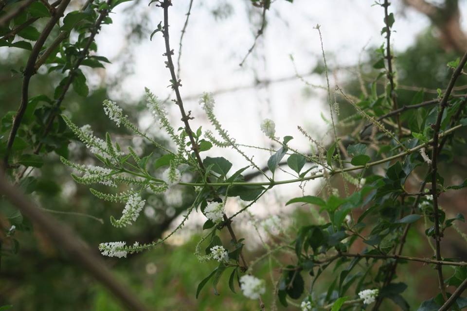 แถมเดินลึกเข้าไป นอกจากยี่โถสองกอที่ปลูกไว้กำลังให้ดอกสวย เจอพี้จั่นที่ด้านหลังกำลังบานสะพรั่งอยู่ด้วย แถมด้วยโมกราชสีห์ที่ลานหินโค้ง กับราชาวดีที่หน้าห้องปฏิบัติธรรม
