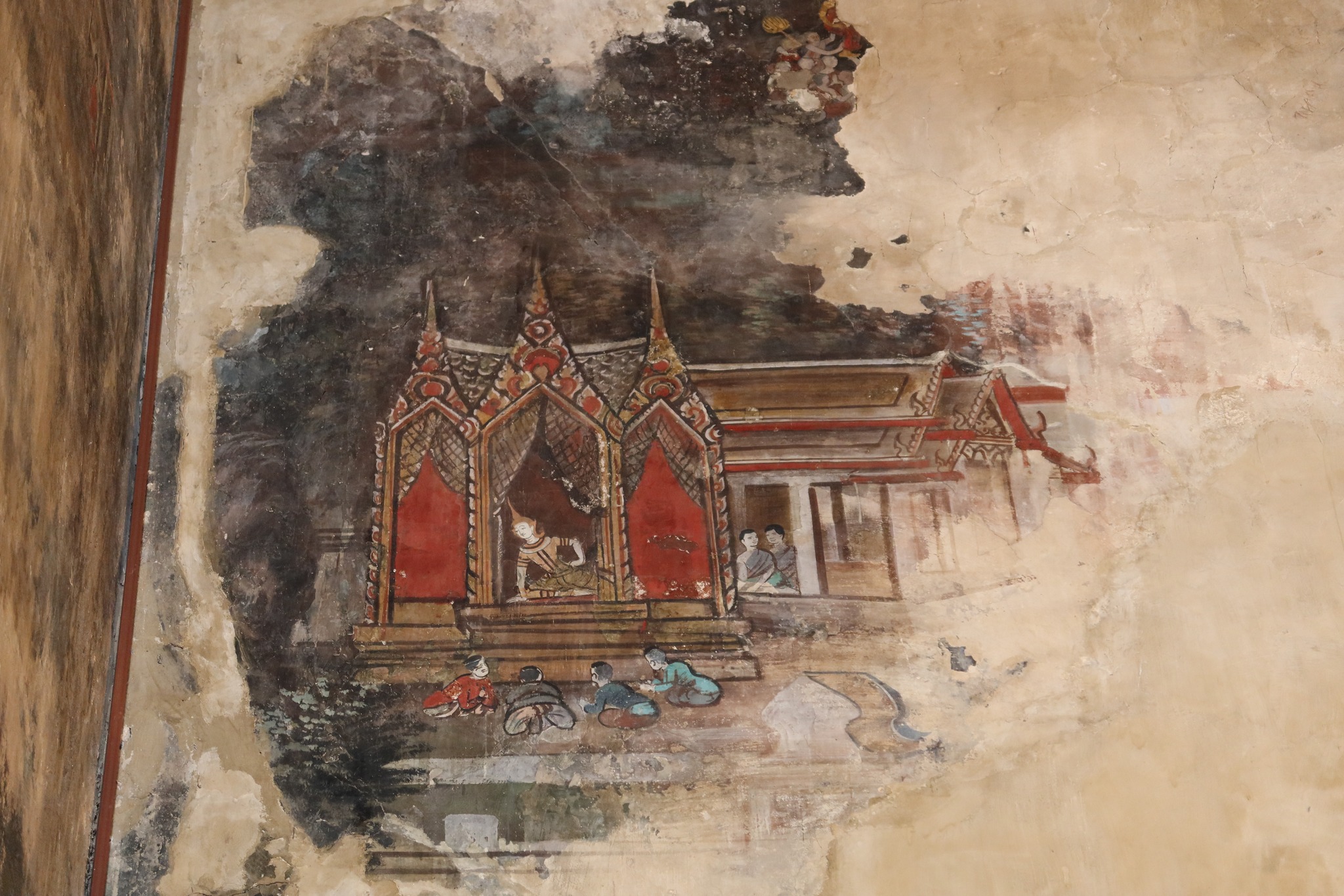 นอกจากอะโบสถและพระงามแล้ว ภาพผนังก็งามมาก