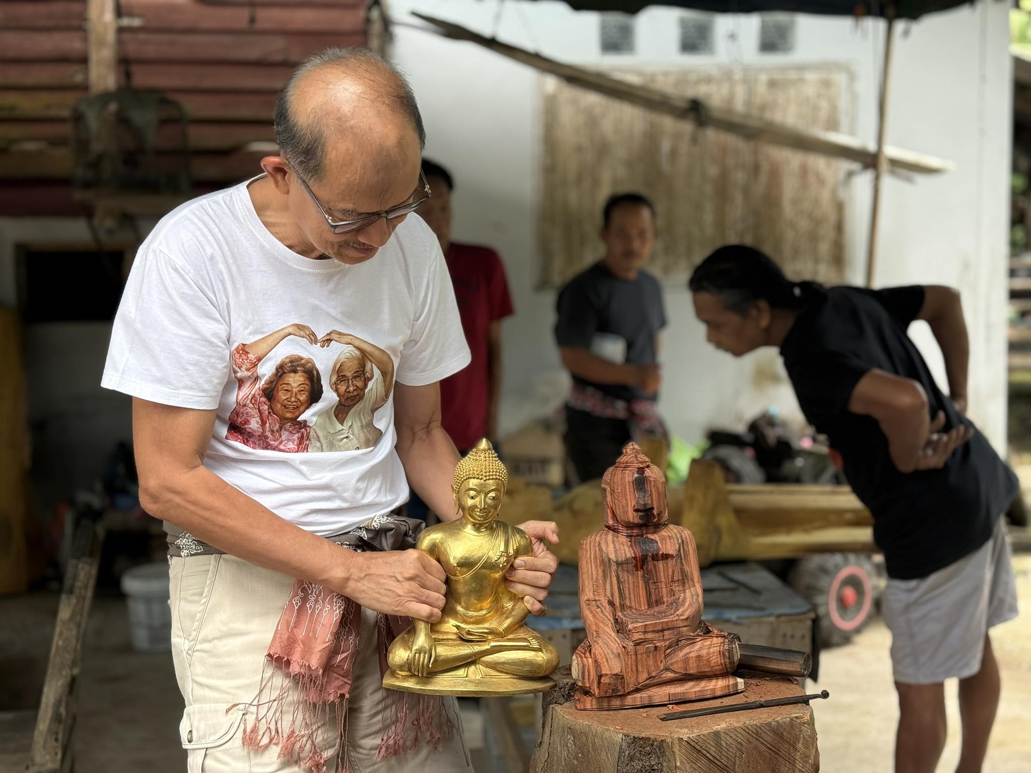 จึงชวนกันตัดส่งมอบให้สองช่างแฝด เสกสรรค์ คงอ่อน ช.แฝด ลายไม้ ลองแกะดูก่อน