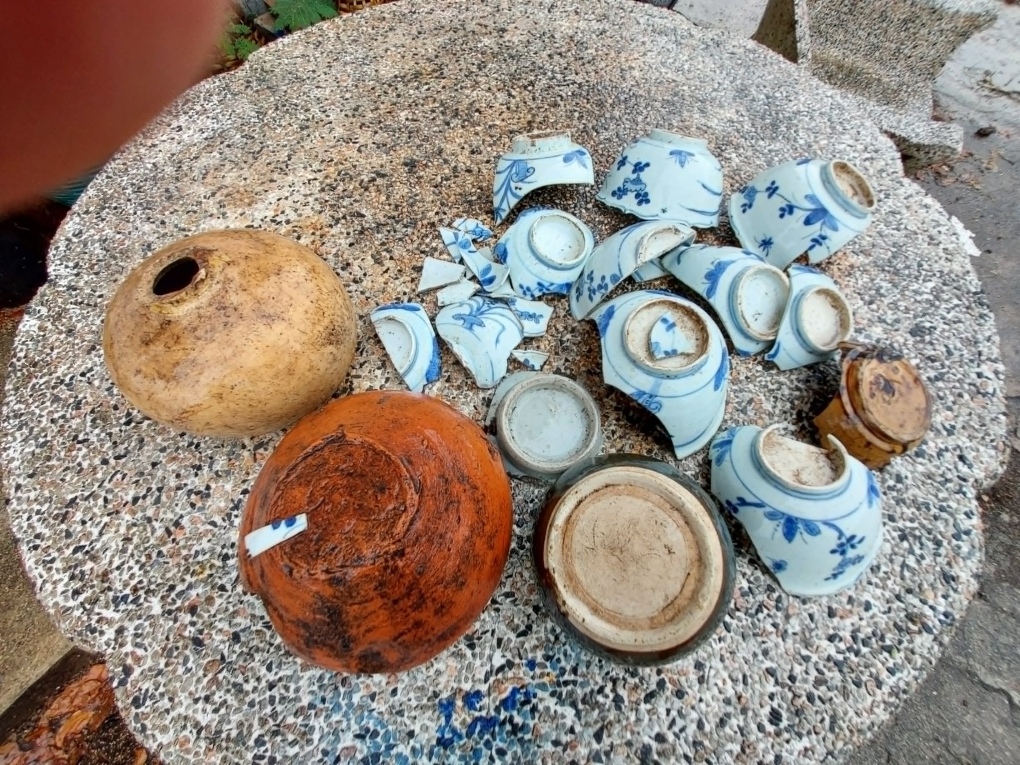 ๖) ส่วนเครื่องถ้วยชามที่พบใต้ดิน และมีการเก็บไว้นั้น