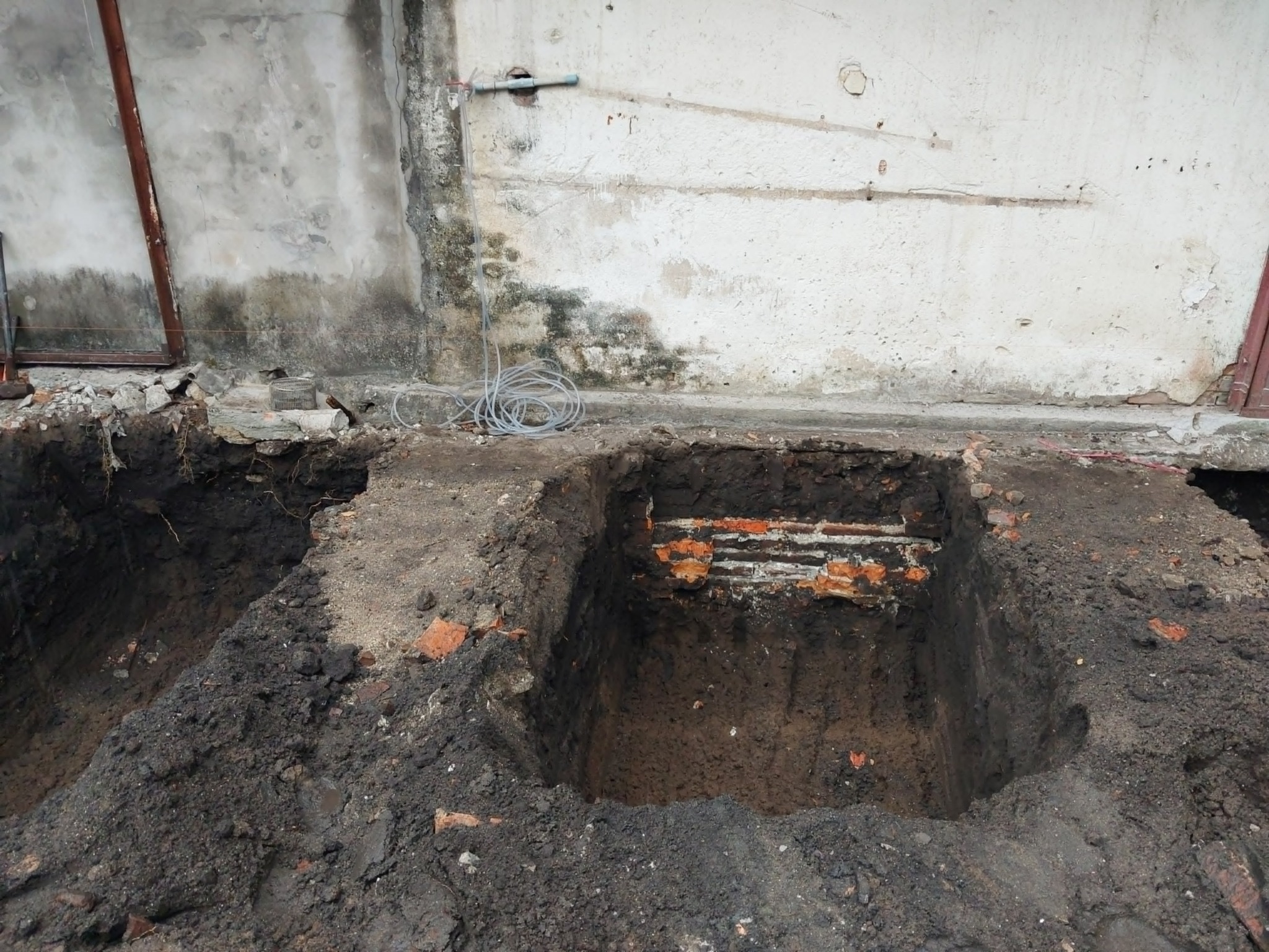 ดูเหมือนว่าพบแนวกำแพงเก่าของวัด และขุดขึ้นมาไว้ ๒ แผงนั้น