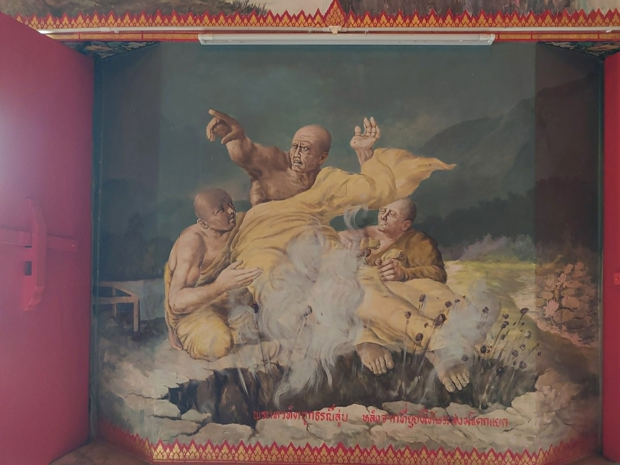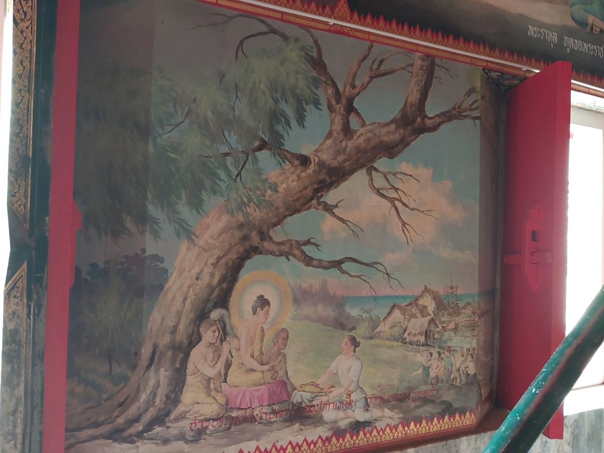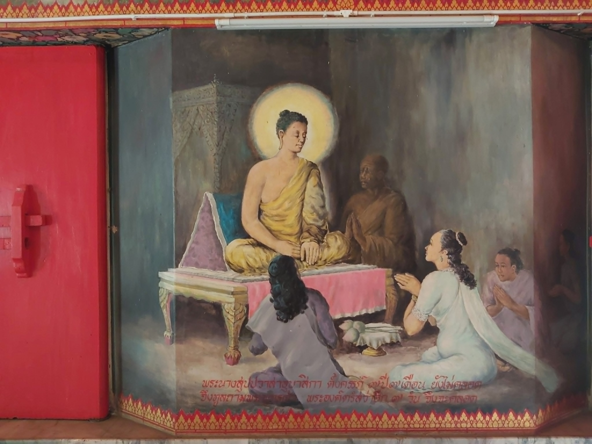 สำหรับแนวล่าง ก็น่าสนใจมากจากการเลือกวาดภาพพุทธประวัติที่ไม่ค่อยได้เห็นวาดกัน