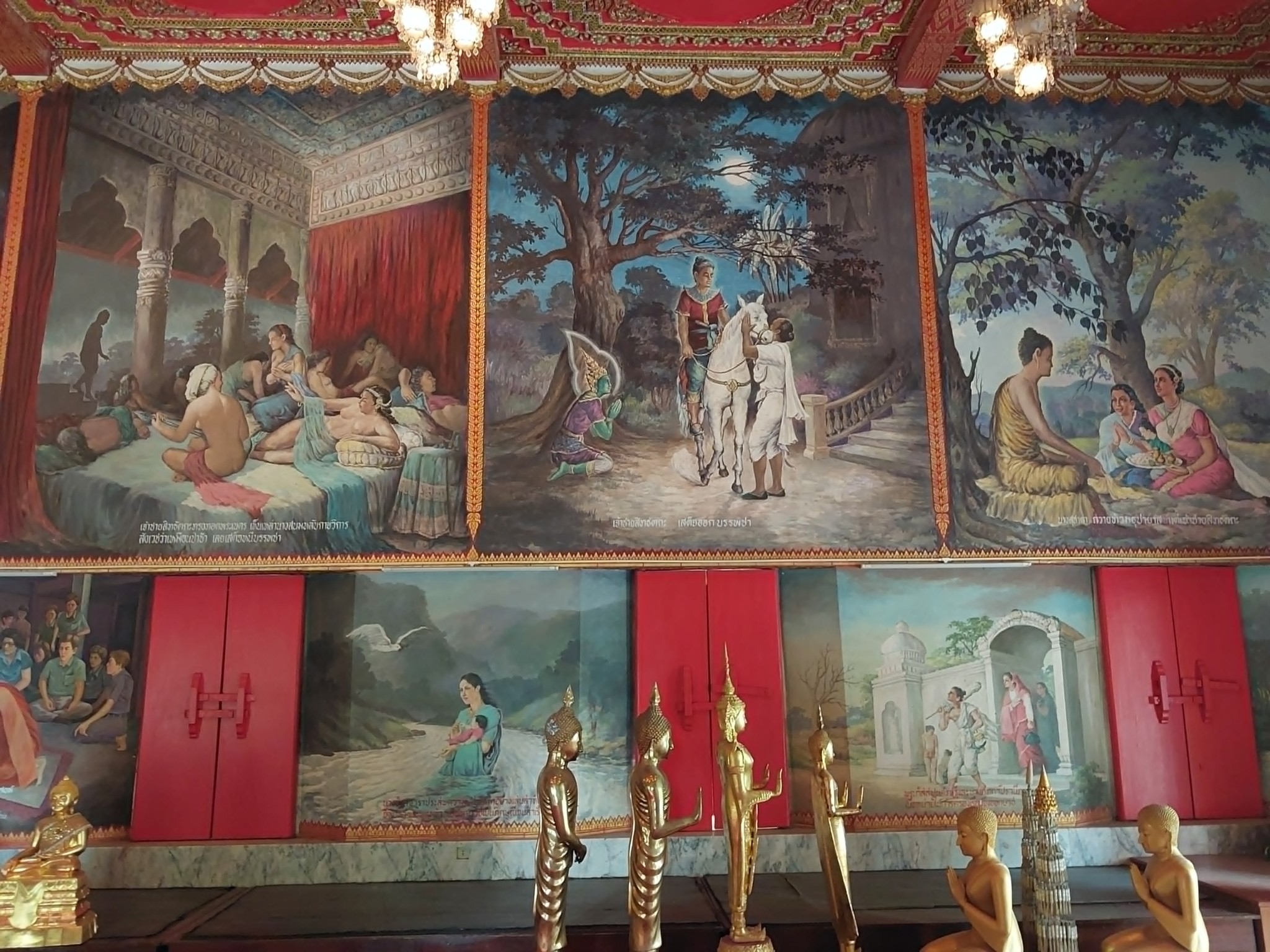 แนวบนเริ่มจากพระประสูติจนออกผนวช ตรัสรู้ จนถึงบวชพระราหุล