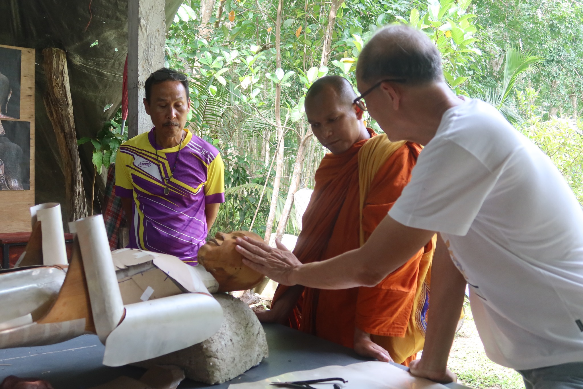 ขณะนี้คืบหน้าตามนี้ครับ เดินหน้าการวัดตัดแผ่นเงินเพื่อหุ้มแผลงแล้ว ๑ ใน ๓