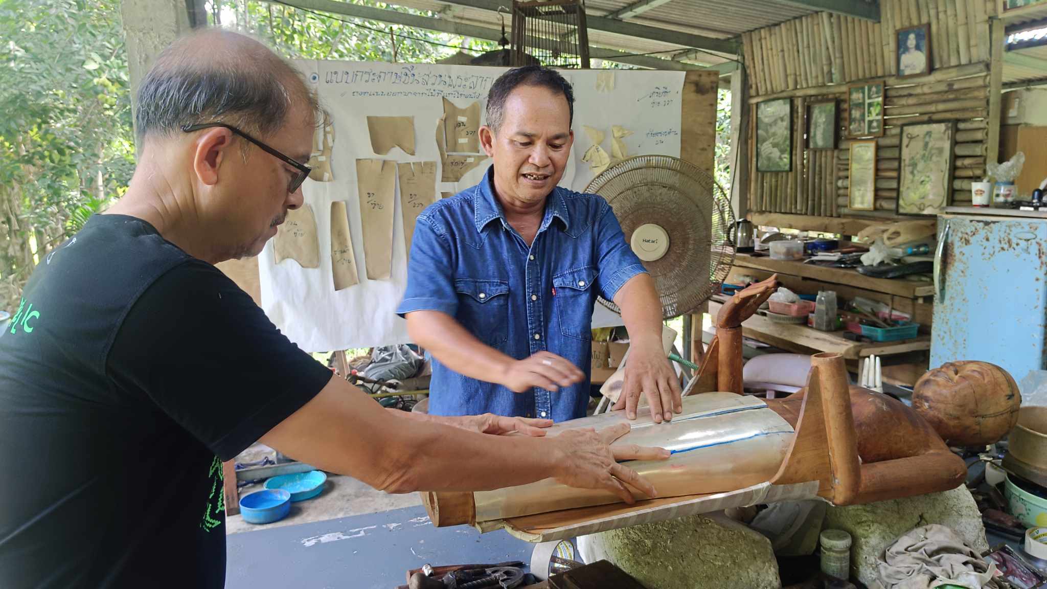 วันนี้แวะไปเยี่ยมสองช่างที่ขุนทะเล บอกว่าไม่กี่วันนี้น่าจะบุหุ้มแล้ว