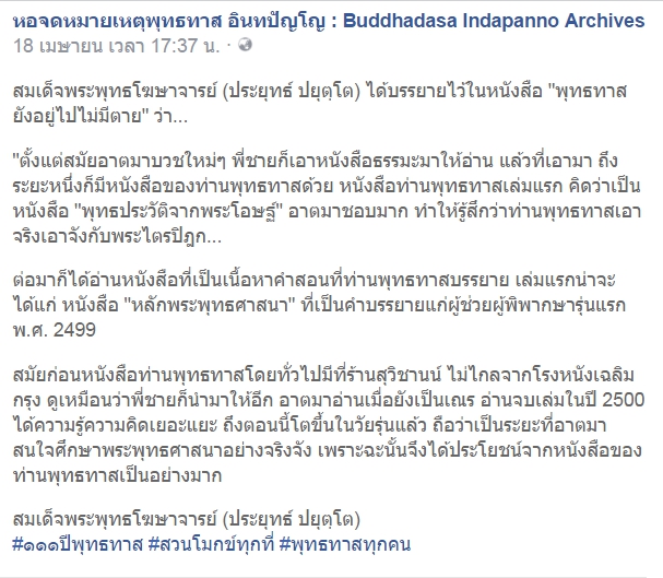 เพราะฉะนั้นจึงได้ประโยชน์จากหนังสือของท่านพุทธทาสเป็นอย่างมาก..."