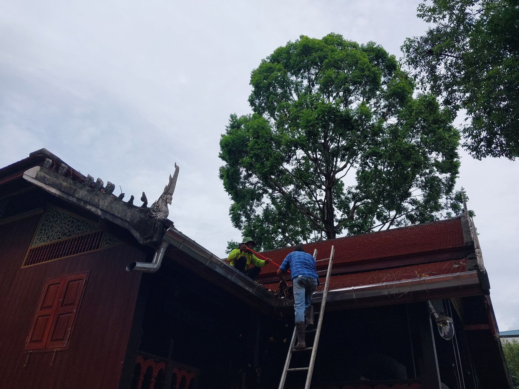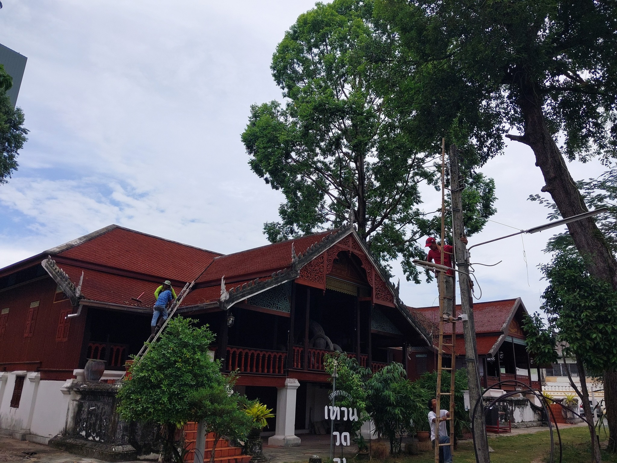 ทีมขึ้นหลังคากุฏิ นายหัว Khamjiang Panitdee กับโกอ่าง นคร ชิตเมธา จัดให้