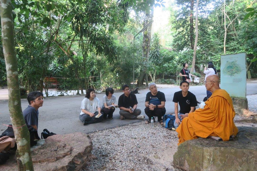 ที่คณะเพลินธรรมนำชมร่วม ๒๐ คน กำลังลงไปทำการสำรวจนานาภาพปริศนาธรรมในโรงหนัง นำโดย นายอุ้ย พี่เต่า พ่อโจ้ กับ แม่แก้ว แล้วผมทิ้งไว้เพื่อมาตายก่อนตายในงานเสา(ร์)๕ ที่สวนโมกข์กรุงเทพ