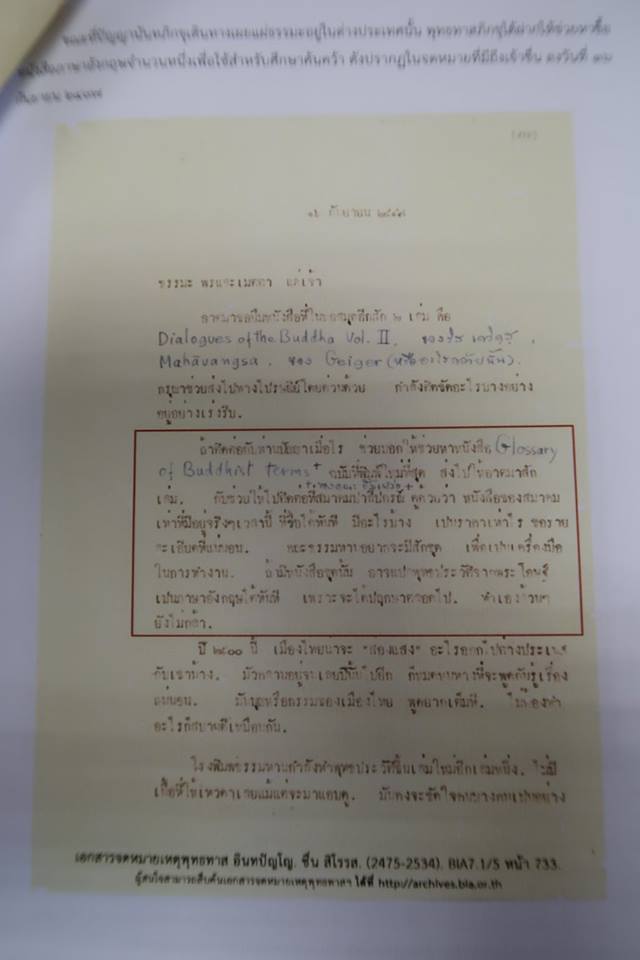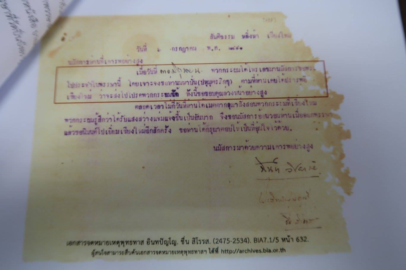 โดยมีรายละเอียดผ่านทั้งจดหมายและหลายบันทึก