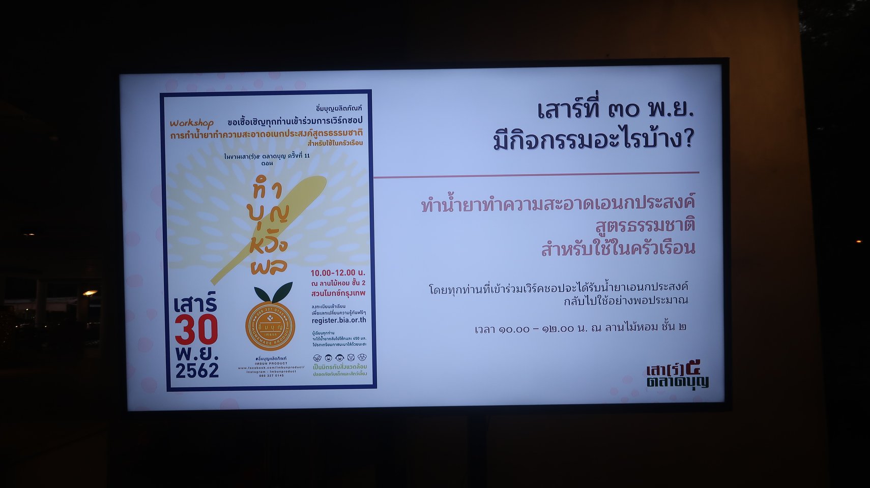 ที่สวนโมกข์นั้น เราลองทำงานเบา ๆ กันในลักษณะตลาดบุญ ทุกวันเสาร์ ๕ (เฉพาะเดือนที่มี) ทำไปทำมา ที่ว่าจะเบากลายเป็นหนักขึ้น ๆ อย่างเช่นกำลังนี้เพราะมีศิลปินไม่รู้กี่สิบชีวิต มาจัดคอนเสิร์ตทำบุญหวังผลต่อเนื่องจากตลอดวันที่มีติดตลาดอะไรบ้างผมก็ไม่อาจรู้ได้ทั้งหมดยกให้มูลนิธิเพื่อเด็กกำพร้าที่พัทยาที่คุณพ่อบาทหลวงท่านตกกระไดพลอยกระโจมมีคนเอาทารกมาวางไว้หน้าอาราม จนทำมา ๔๕ ปีแล้วครับตะกี้ลงไป เจอมนุษย์แมงมุมบนเวที กับเจ้าการ คุณเจี๊ยบ วรรธนาสั่งว่า ๓ ทุ่ม ห้ามไปไหน ให้รอขึ้นเวที " ครับ ๆ "