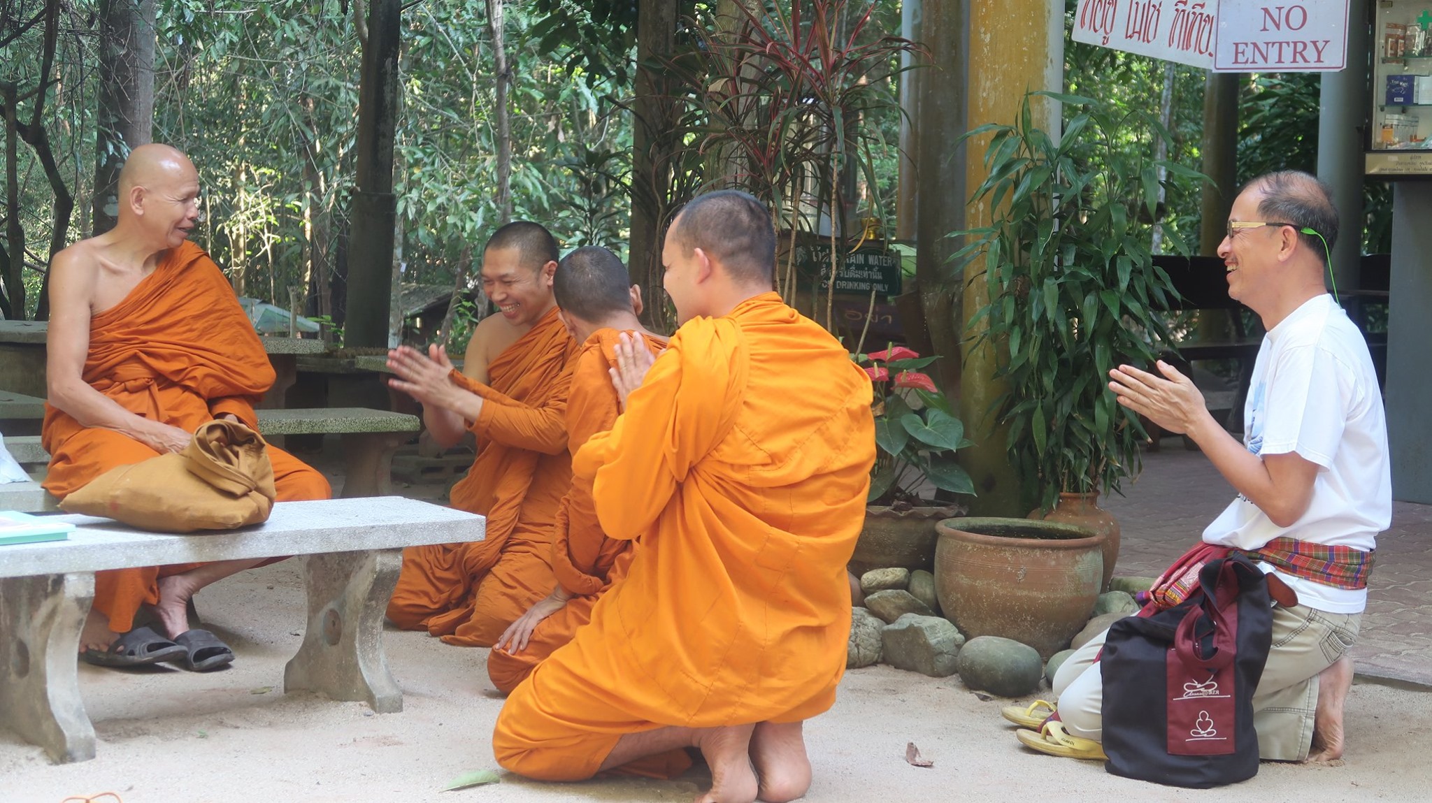 เป็น ๑๐ ชม. ที่ไม่ธรรมดา ตั้งแต่ไปรับท่านพระครู Siridhammapirat Yodkhun หัวหน้า เครือข่ายการเรียนรู้สู่ธรรมวาที : Dhammavadi ที่พระธาตุพลอยรับท่านพระครูเหมฯ โสพิทร์ แซ่ภู่ ไปด้วยแล้วแวะขึ้นดูรอบนเขาศรีวิชัยพักใหญ่ก่อนตรงไปสวนโมกข์ไชยาให้ทั้ง ๒ พระครูตอบ ๑๓ เณรถามแล้วรับกลับพร้อมเสืออีสาน มหา เชน ชุมพรกราบลาท่าน อ.สิงห์ทอง แล้วบึ่งไปส่งสนามบินสุราษฎร์