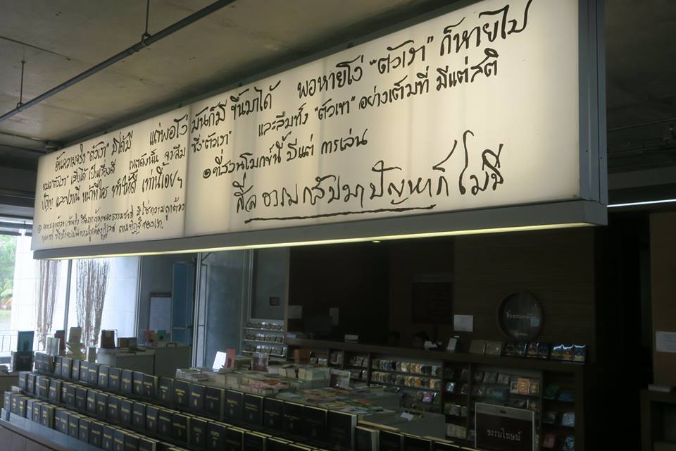 ป้ายหนึ่งในห้องหนังสือและสื่อธรรม