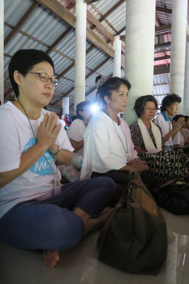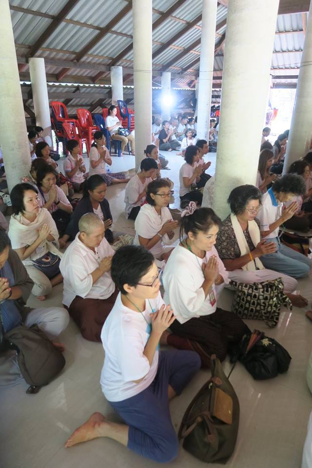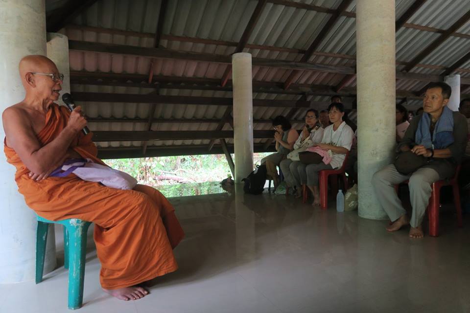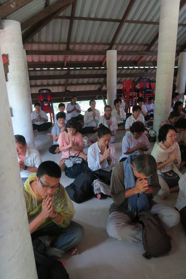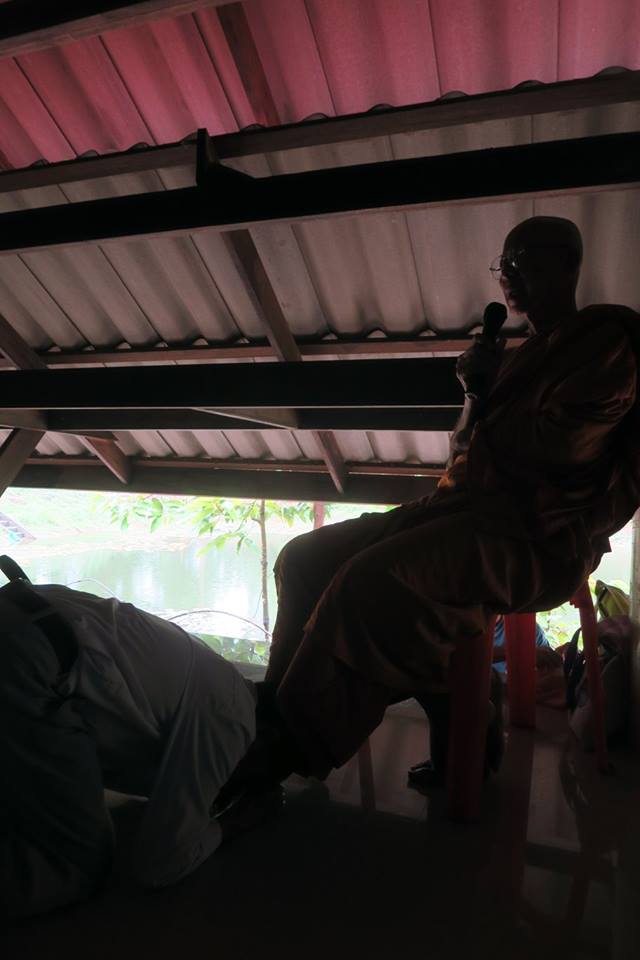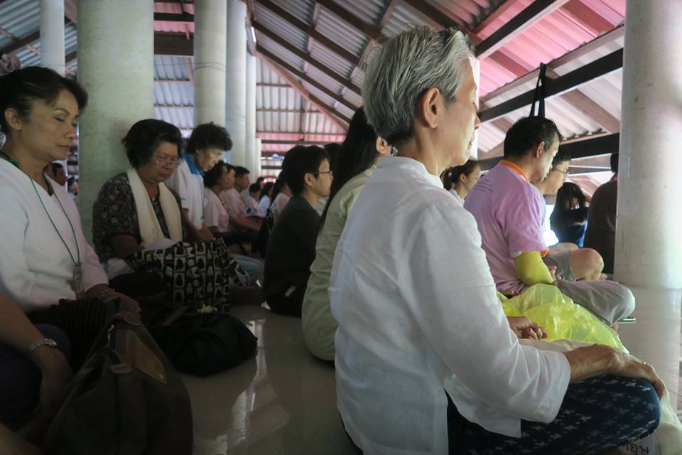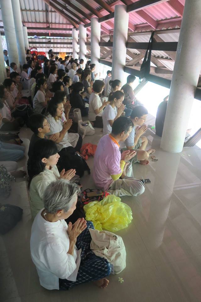 ภาพ การร่วมกันภาวนาในศาลาปฏิบัติธรรมหลังใหม่แห่งสวนโมกขพลารามเดิมที่ อ.พุทธทาสเริ่มตั้งและพำนักอยู่ ๑๐ ปีแรก บริเวณริมตระพังจิก นับเป็นการภาวนาครั้งปฐม หลังจาก มรภ.สุราษฎร์ธานีดำเนินการก่อสร้างถวาย จากการออกแบบถวายของ อ.ดร.วันชัย มี อ.โพธิ์นำ ท่านอธิการบดีและคณะช่วยกวาดถูและขนเก้าอี้มาเตรียมไว้ให้ คณะบุญจากริกและธรรมภาคีจากสวนโมกข์กรุงเทพ ๑๒๐ กว่าคน เมื่อวันที่ ๒๖ พค.๕๙