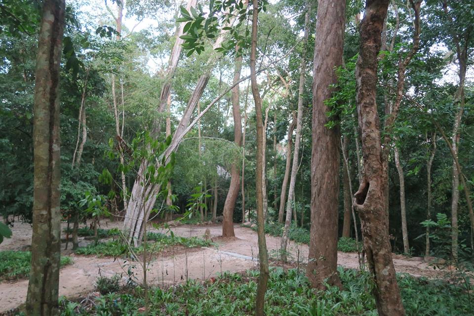 ประกอบด้วยลานแท่งศิลาที่เผาร่างท่านอาจารย์และนานาหมู่ไม้รายล้อมองค์พระประธานบนยอดเขา ต่างเสาวิหารและช่อฟ้าใบระกา กับทางเดินขึ้นลงหลัก ผ่านกุฏิใหญ่ที่เดิมท่านจะให้เป็นหอไตร กับกุฏิท่านทองสุข ผู้ปั้นพระและพัฒนาเขาพุทธทองมาแต่เดิม