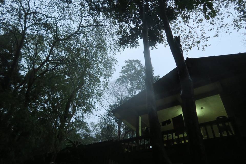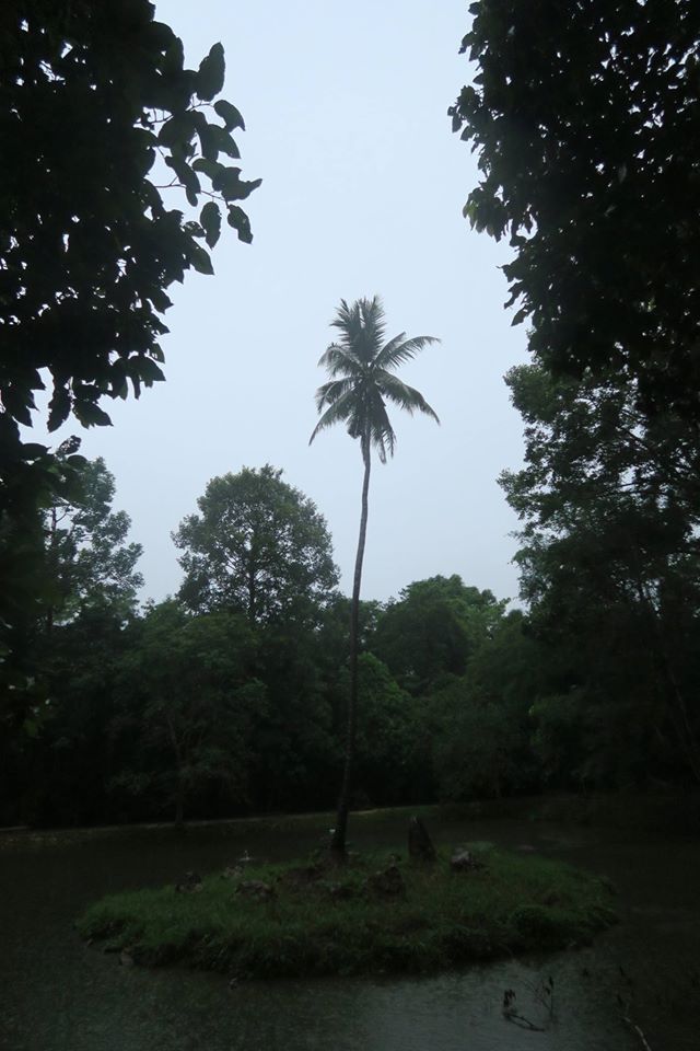 ภาพ มะพร้าวนาฬิเกร์ กับ เรือนพักชายในดงโมกและยาง ตีนเขาพุทธทองริมสระนาฬิเกร์ สวนโมกข์ไชยา เมื่อ ๒๗ พค.๕๙