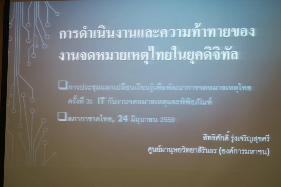 วันนี้ พวกเราร่วมกับเครือข่ายเรียนรู้การจดหมายเหตุไทย ที่ค่อย ๆ คิดและทำกันมาทีละนิด ๆ จนมีเพื่อนพ้องภาคีเข้ามาร่วมกันมากขึ้น นัดไปเรียนรู้รอบที่ ๓ ที่สภากาชาดไทย ภายใต้หัวข้อ IT กับงานจดหมายเหตุและวัตถุพิพิธภัณฑ์ ซึ่งได้กรอบความคิดและคำถามมากมายว่ายังไง ๆ ก็ต้องดิจิตัล ซึ่งจะก่อประโยชน์อย่างยิ่ง แต่ประเด็นสำคัญคือจะเอามาตรฐานไหน ? กระบวนการทำงานเชิงระบบที่ดีเอาไง ? ในเมื่อเมืองไทยหานักจดหมายเหตุได้ยากยิ่ง จะทำยังไง ? ใครทำได้ ? สุดท้ายประเทศไทยนี้ ว่าไง ?