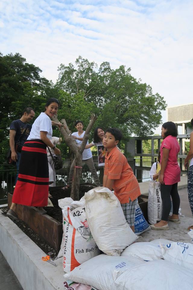 ภาพ ลั่นทมบานดอกแรก กับเมื่อวันแรกปลูกร่วมกัน อาสาฬหบูชา ๕๙ ที่สวนโมกข์กรุงเทพ