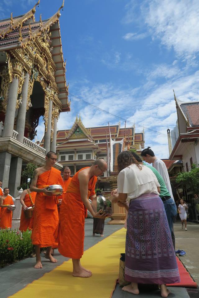 เมื่อได้เวลาใส่บาตรที่ด้านนอกโบสถ์ ผมว่าเป็นจังหวะวิเศษมาก ๆ โดยเฉพาะอย่างยิ่งฟ้าอากาศและจังหวะยืนของผมที่ช่างพอดิบพอดีโดยบังเอิญ เชื่อว่าชาวย่านวัดสุทธิที่มาร่วมกันวันนี้น่าจะปีติสุขกันถ้วนหน้า ผมเห็นพี่แห้งแห่งกลุ่มเพลินธรรมมาช่วยเป็นธุระสารพัดต้งแต่เช้า พร้อมกับบอกว่า นัดนี้ไม่ได้รู้เนื้อรู็ตัวกัน นัดหน้าชาววัดสุทธิเต็มที่แน่นอน