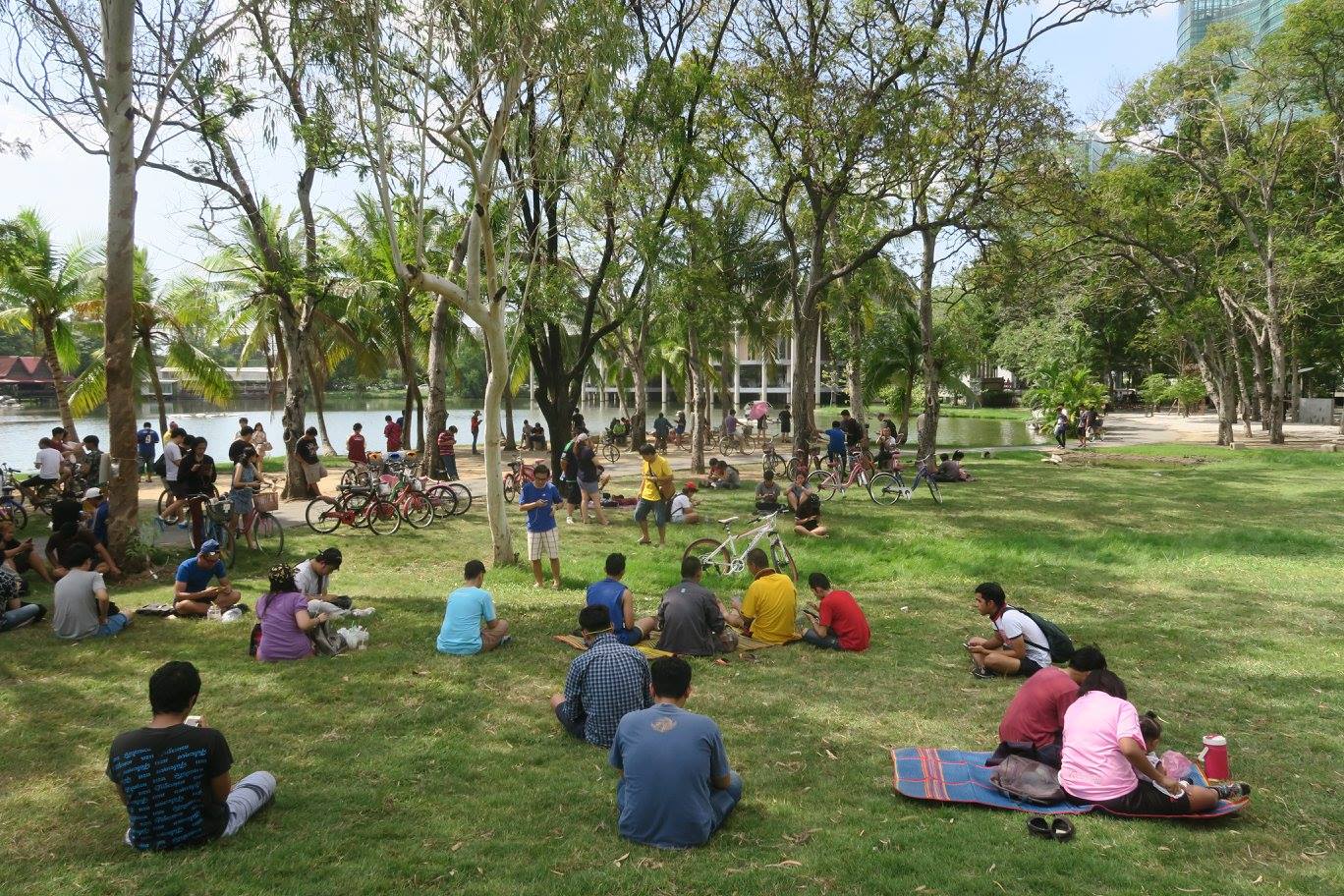 ที่คลาคล่ำมาก พากันอยู่ที่สวนพุทธธรรมและสังเวชนียสถานจำลอง ยังกะมาปิคนิคกันเลยครับ.