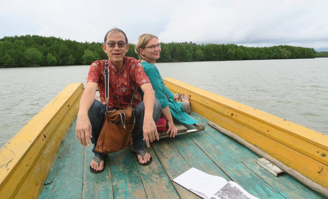 ภาพ บนเรือจาก น้ำเค็ม-เกาะคอเขา - เขาพระเหนอ-น้ำเค็ม เมื่อวันที่ ๒๔ สค. ณ ขณะแผ่นดินไหวในหลายแห่ง เพื่อซึมซับการเดินทางมาถึงของนักเดินเรือโบราณเพื่อเข้ากำบังคลื่นลมหลังเกาะคอเขา แล้วล่องเข้าปากคลองที่เขาพระเหนอที่เป็นจุดหมายตาและสถาปนาเทวสถาน ประดิษฐานพระวิษณุองค์งาม สู่บางม่วง-ตะกั่วป่าแล้วข้ามฟากไปฝั่งทะเลตะวันออกที่อ่าวบ้านดอนหรือเมืองนคร ก่อนที่จะหันหัวเรือกลับออกทะเลนอกจนพ้นหัวเกาะที่มีสันดอนทรายใหม่กำลังก่อตัวอยู่