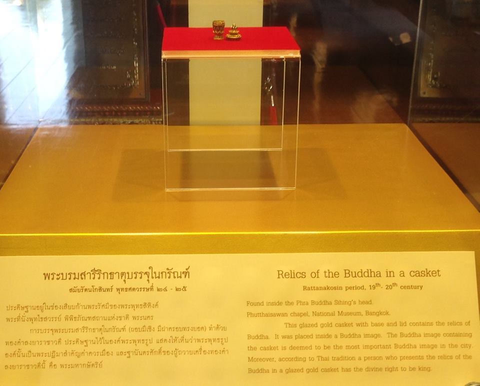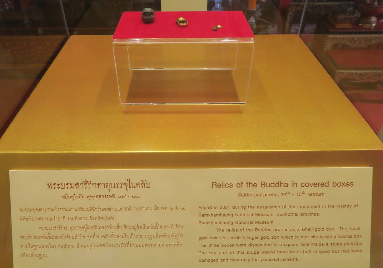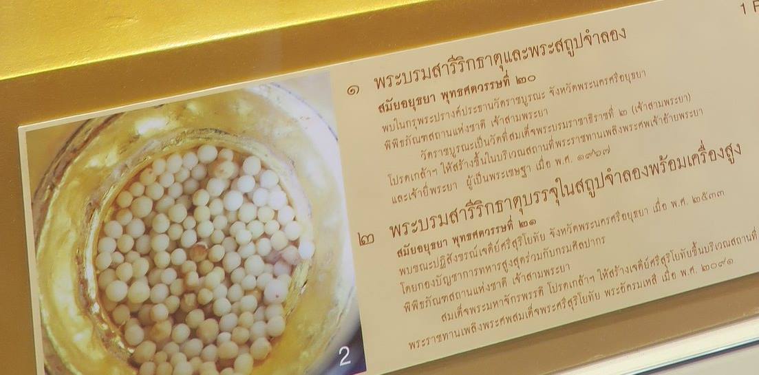 ภาพ พระบรมสารีริกธาตุทั่วไทย เท่าที่พบและเก็บรักษาอยู่กับกรมศิลปากร เมื่อครั้งนำมาประดิษฐานให้ผู้คนสักการะ ณ พระที่นั่งพุทไธสวรรค์ ในพิพิธภัณฑสถานแห่งชาติ พระนคร