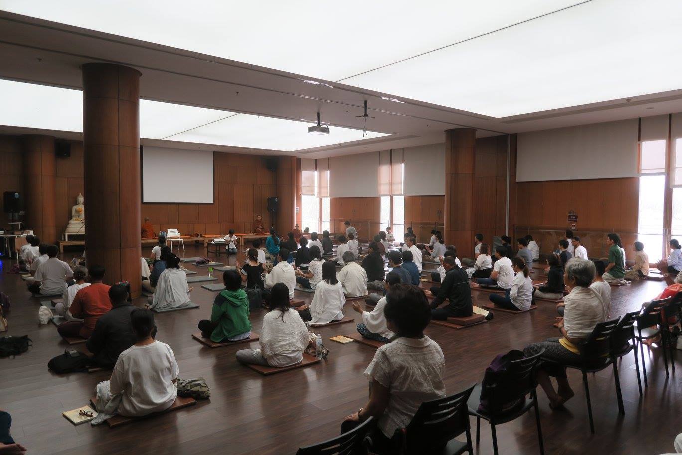 ตะกี้หลวงพ่อมหาดิเรกกำลังนำภาวนากันอยู่ ใครอยู่ไกลหรือไม่ได้มา ลองอ่านข้อธรรมที่คัดสรรมาทำเป็นนิทรรศการกันเองนะครับ นิทรรศการนี้จัดตลอดเดือนนี้ครับ