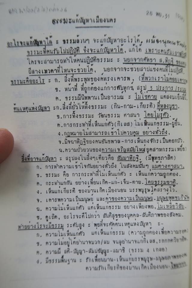 ธรรมกถาชุดนี้ที่พวกเราไปอาราธนาท่านอาจารย์แสดงที่สวนโมกข์ไชยานั้น แม่คงจำได้ เพราะแม่กับน้าพาและป้าน้าอาอีกหลายคนไปกันเต็มรถแวกอนอีซูซุคันขาวและอีกหลายคัน ท่านอาจารย์มีบัตรย่อเรื่องเมื่อวันที่ ๒๘ พย.๓๑ ไว้ด้วยครับ ขากลับฝนตกหนักตลอดทาง พออีกสองสามวันน้ำก็ท่วมใหญ่ทั้งคีรีวง กะทูนจนทั่วทั้งเมืองนครในวันที่ ๓๑ พย.๓๑ ไงครับ.