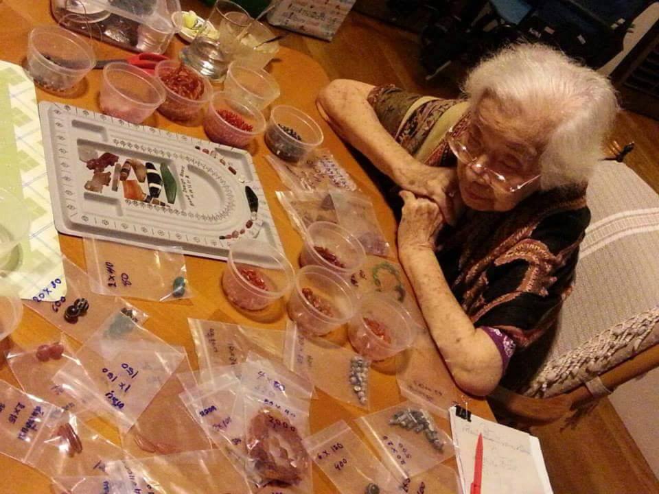 ภาพ แม่เมื่อเย็บปกเสื้อตัวที่ซื้อมาจากเกาะบังก้าปลายเกาะสุมารา กับ ทำงานกับติ่ง และ ร้อยสร้อยลูกปัดอู่ทองที่กำลังฟื้นคืนเพื่อพี่ตั้วเอาไปประมูลถวายท่านอนิลมานเอาไปช่วยแผ่นดินไหวเนปาล