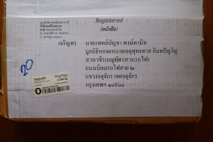 ได้รับกล่องพัสดุนี้ จากที่พักสงฆ์ในชนบท