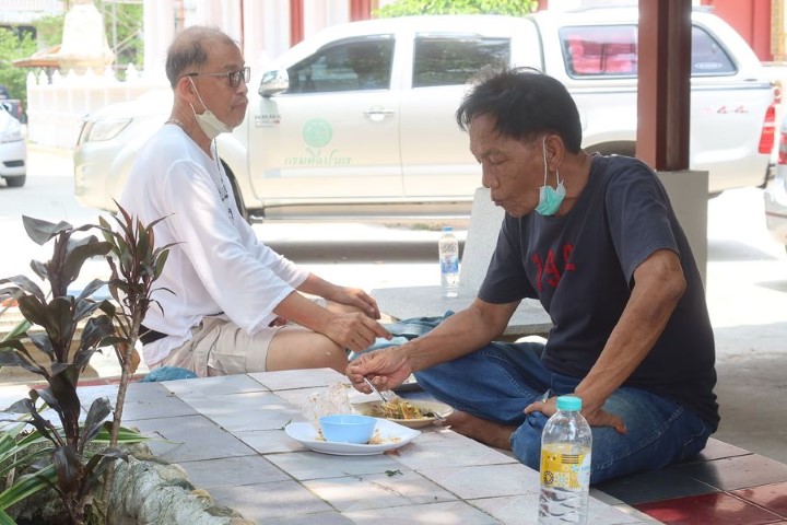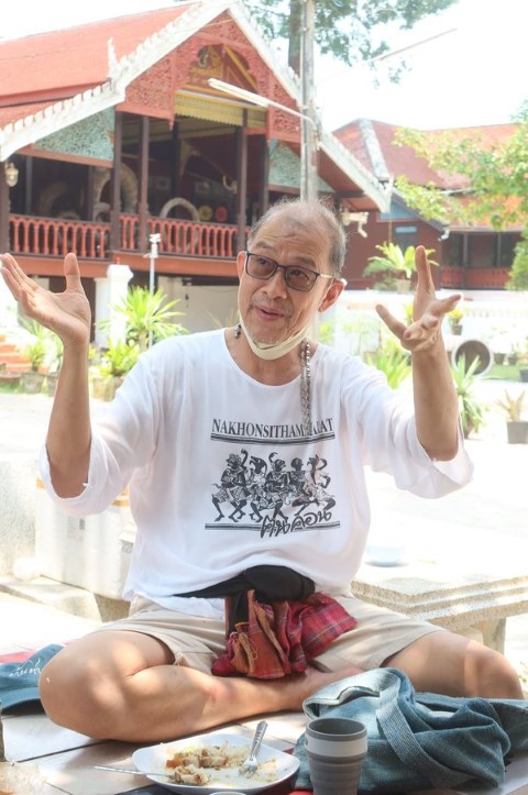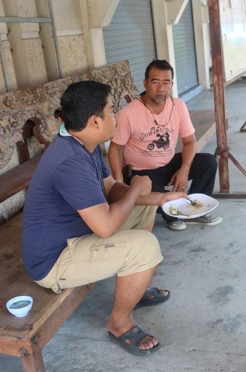 สั่งข้าวมันไก่หมูกรอบกับสะเต๊ะคลุกอร่อยหลังวัดมากินกันในวัด