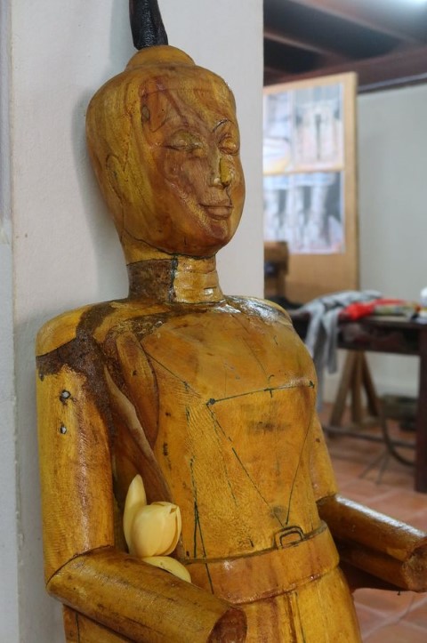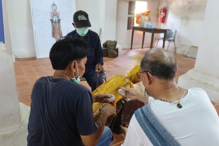 จากนั้นทีมช่างทั้งหลายก็ลงมือแกะรูปพระที่ระดับอกจากด้านหลัง