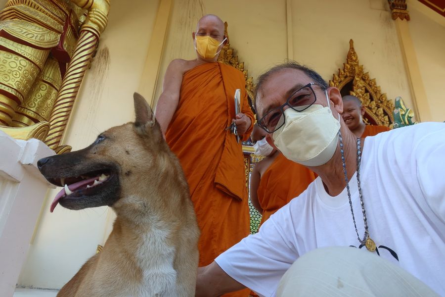" ... สาอิฟัดกัดขบกับหมาเจ้าคุณครับผม ... " ผมตอบ แล้วก็ถ่ายรูปกัน