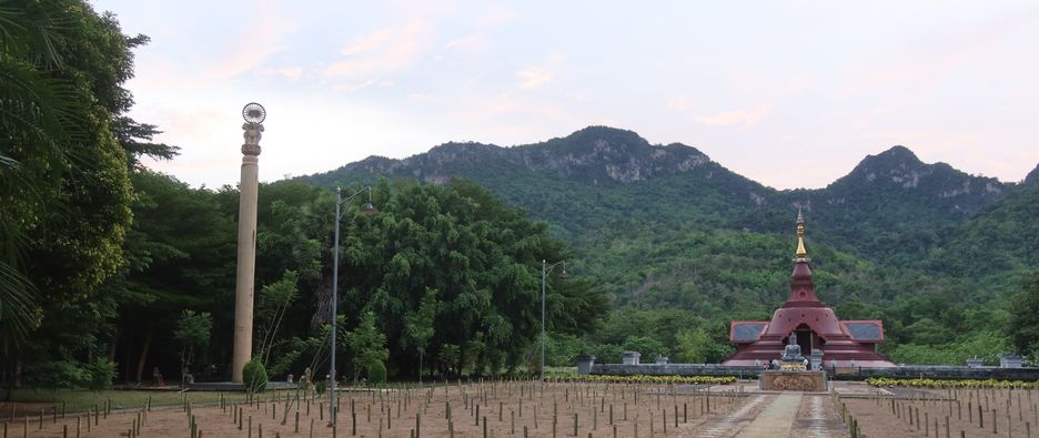 ด้านหลังพระสถูปและเสาอโศก ฯลฯ
