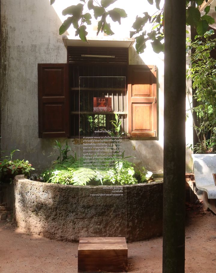 ที่หลังลูกกรงกุฏินี้ มีตั่งไม้เตี้ย ๆ และแคบอยู่ตัวหนึ่ง