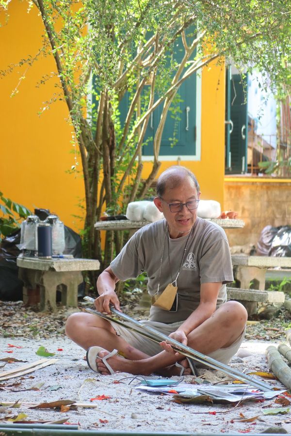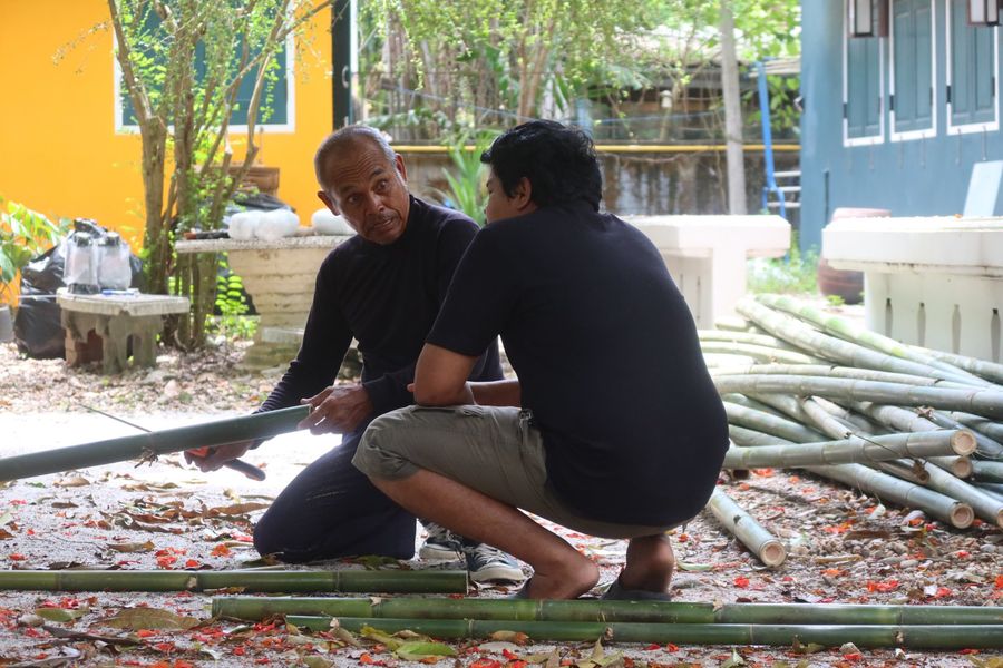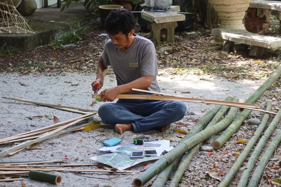 สองวันมานี้ มีผ่าเหลาและตัดไผ่ เพื่อประกอบลำลอง เป็นที่พึงพอใจ