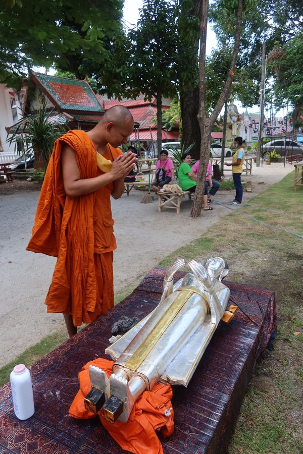 คือการสรงน้ำและประแป้งองค์พระ เพื่อชำระล้างคราบต่าง ๆ