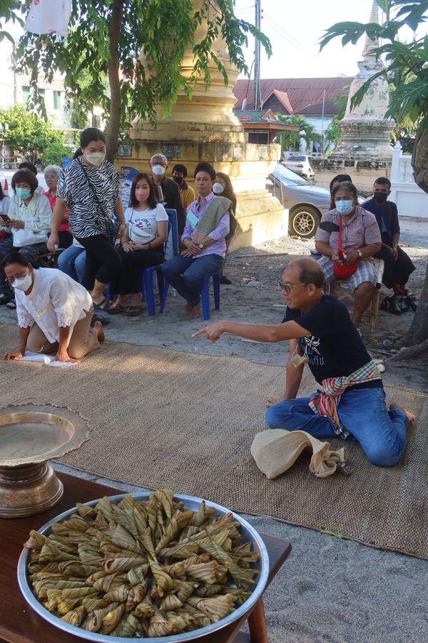 ณ จังหวะหนึ่ง ของการใส่บาตรพระลากที่ลาน วัดจันทาราม เมืองนครศรีธรรมราช เช้านั้น เพื่อให้ครบถ้วนกระบวนการ