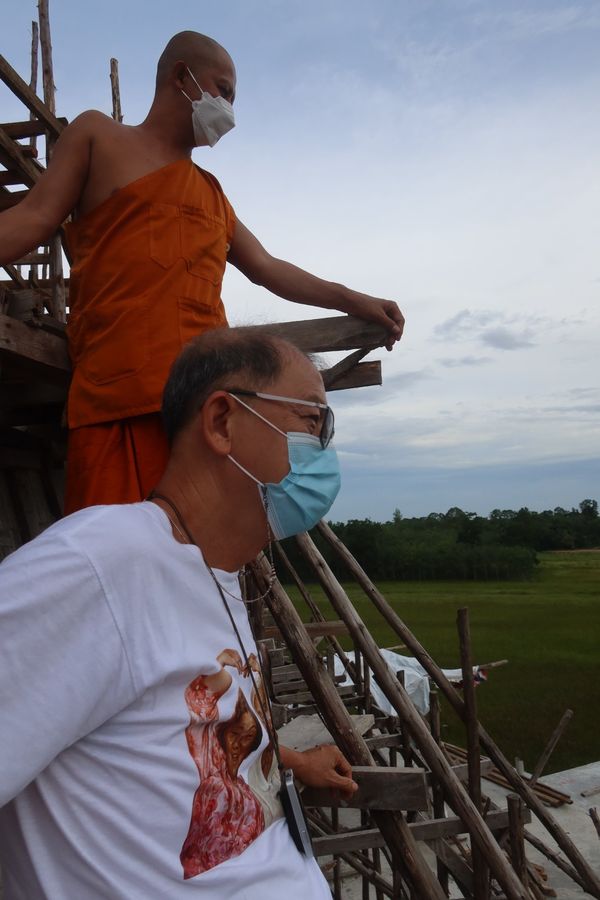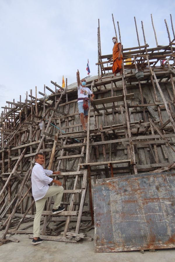 ท้ายที่สุด ท่านชวนขึ้นไปดูธัมเมกสถูปที่สร้างถึงโดมแล้ว